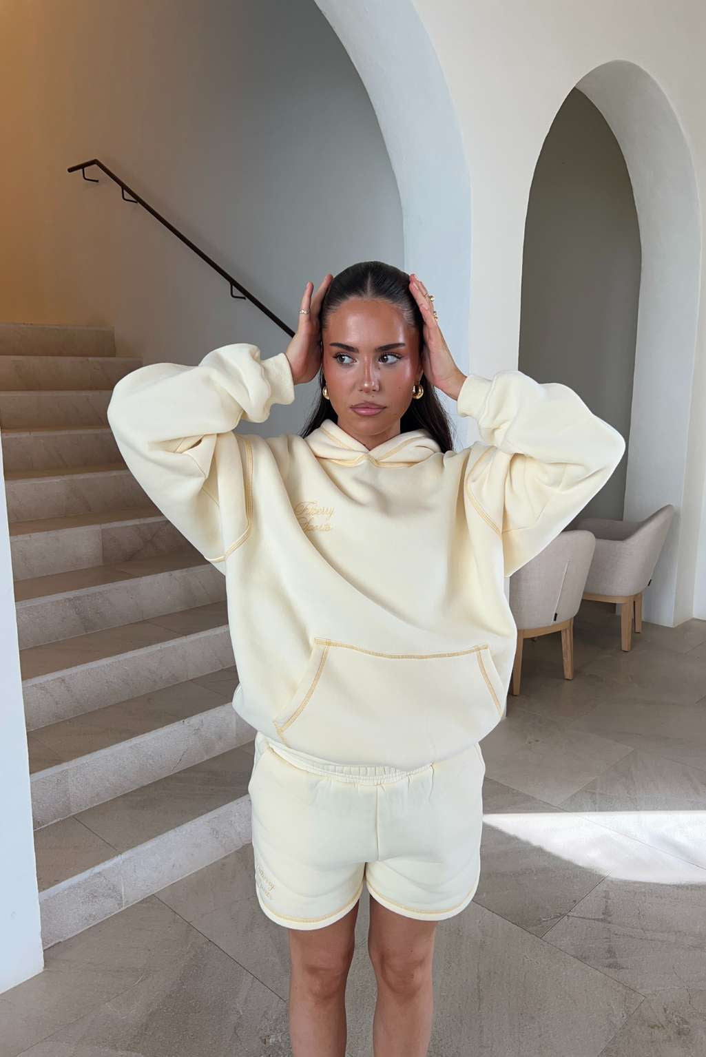 FITBERRY® CONTOUR OVERSIZED HOODIE. An oversized hoodie crafted from premium high-quality cotton fabric. Designed with a tonal seam detailing that adds structure and contrast to the silhouette. The hoodie has a soft fleece interior, dropped shoulders, a cozy hood, front pocket and ribbed details on the sleeves and waist. Finished with an embroidered Fitberry contour logo to front.