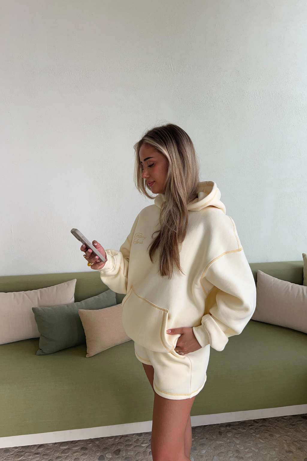 Model 1: Hanna is 160cm and wears a size S in hoodie and size XS in joggers / shorts.