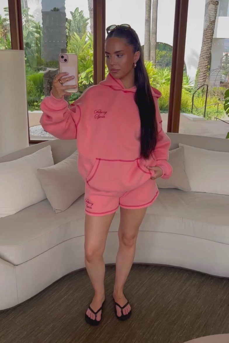 FITBERRY® CONTOUR SHORTS. Shorts with a relaxed and slightly oversized fit crafted from a premium high-quality cotton fabric. Designed with a tonal seam detailing that adds structure and contrast to the silhouette. The shorts feature a soft fleece interior, deep side pockets and a hidden adjustable drawstring. Finished with an embroidered Fitberry contour logo to front.