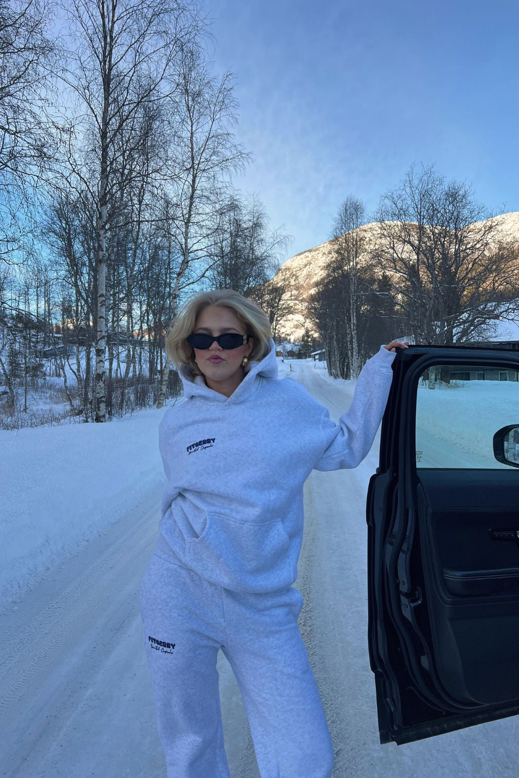 Frida Seemann is 180m and wears a size M in both hoodie and joggers.