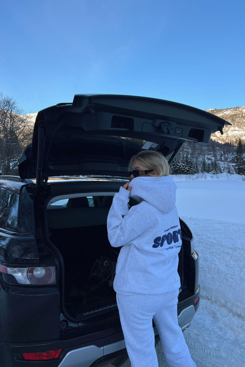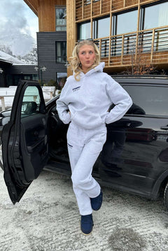 Julie Fiala is 185cm and wears a size L in both hoodie and joggers.