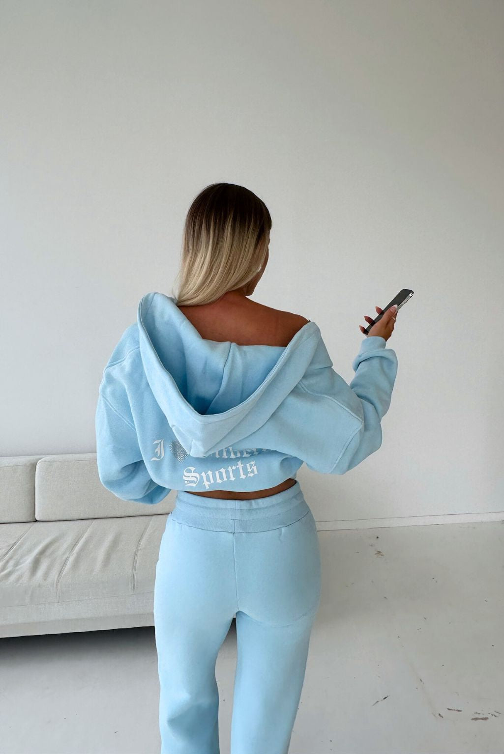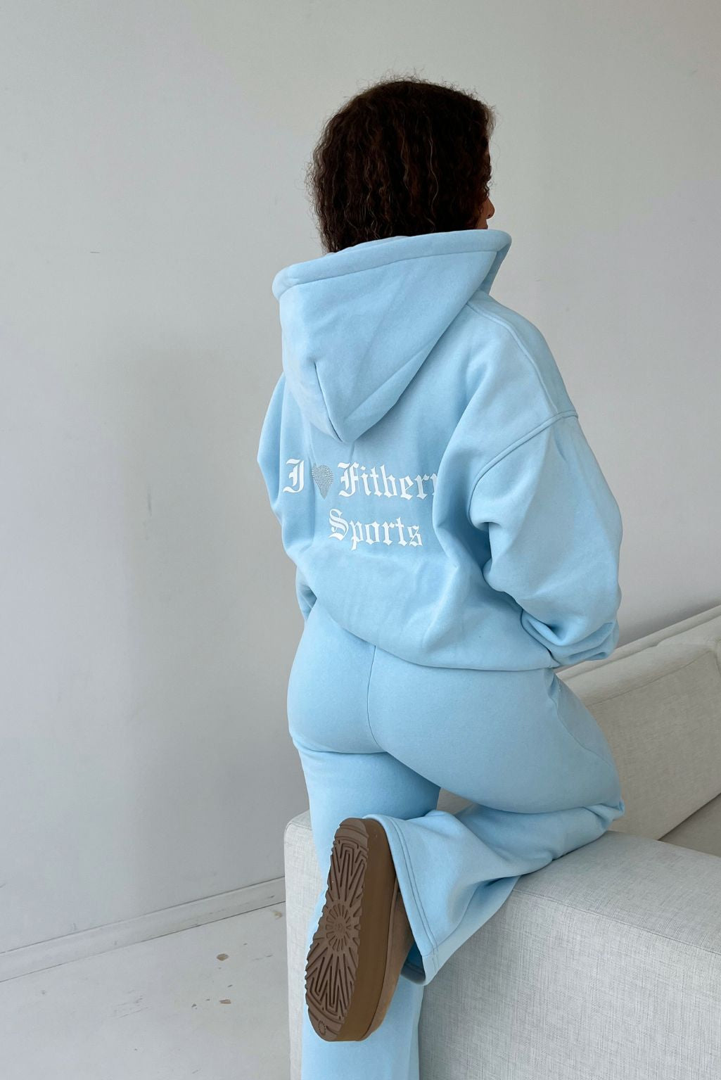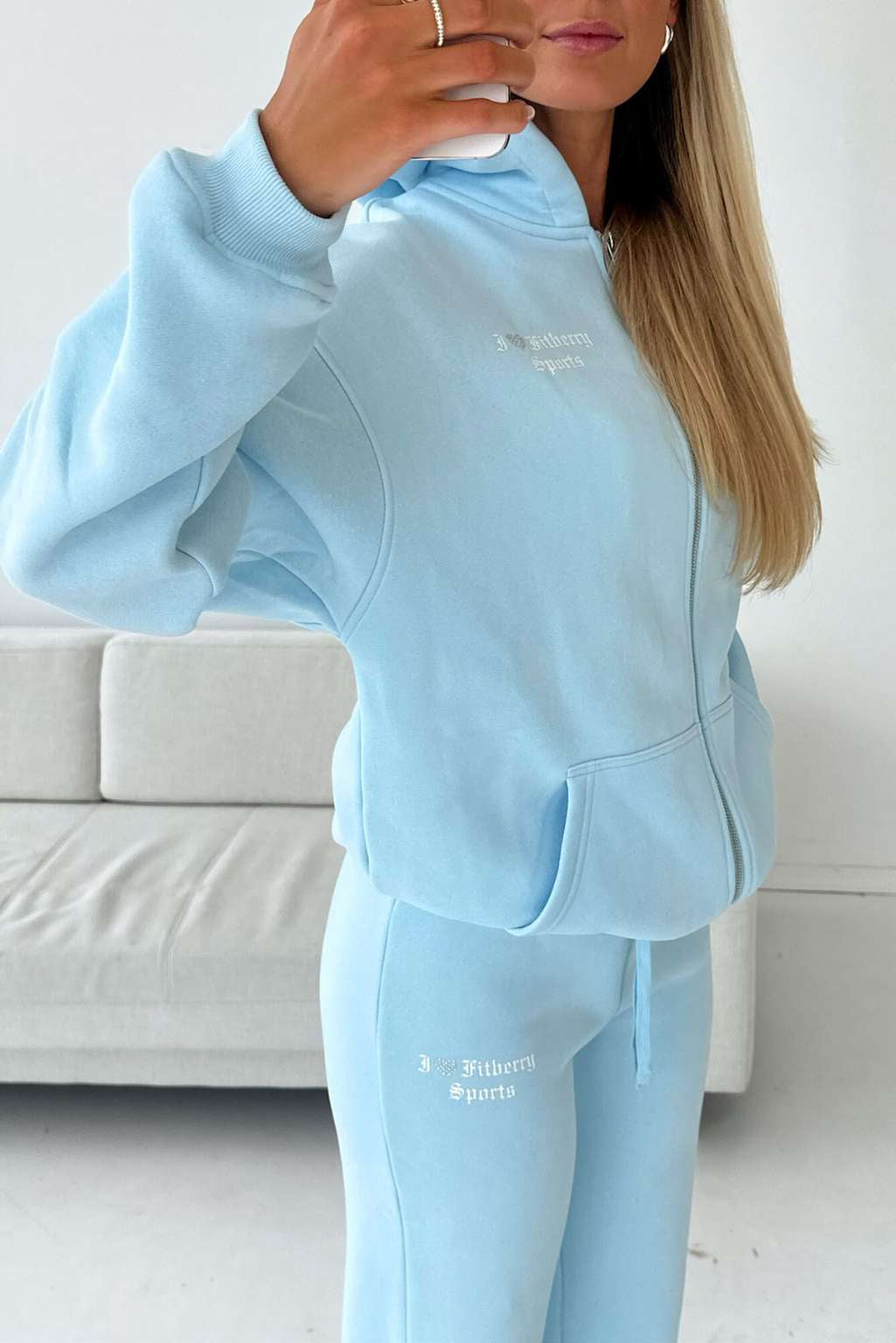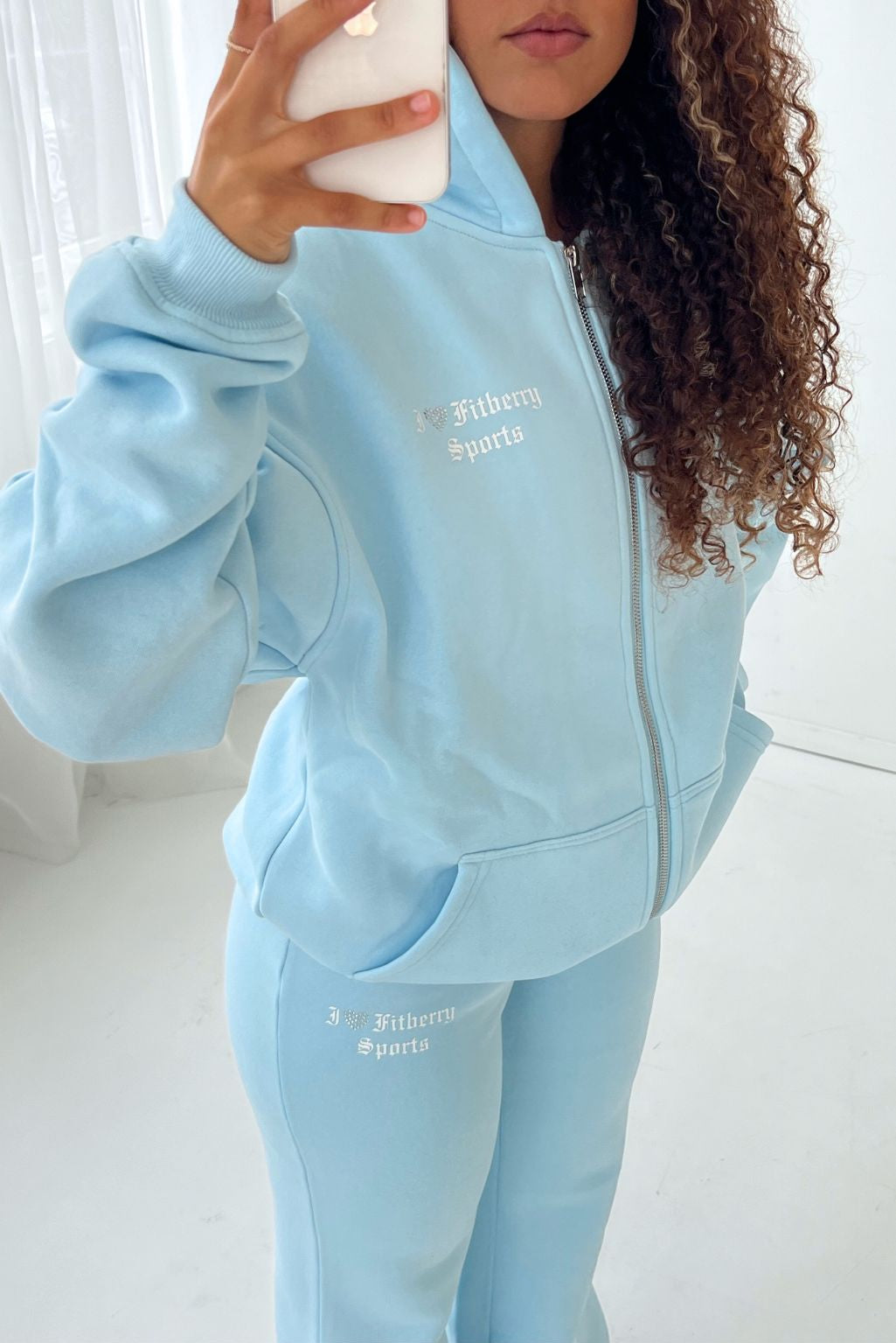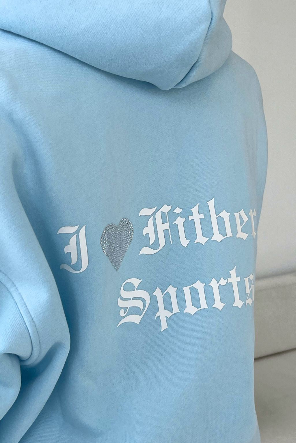 I ♥ FITBERRY® OVERSIZED ZIP HOODIE. An oversized hoodie crafted from premium high-quality cotton fabric. The hoodie has a zipper in front, soft fleece interior, dropped shoulders, side pockets, a cozy hood and ribbed details on the sleeves and waist. Featuring I  FITBERRY print to front and back with handmade rhinestone heart.