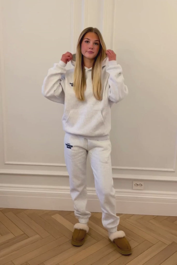 Model 2: Julia is 175cm and wears a size M in the hoodie and size S in the joggers.