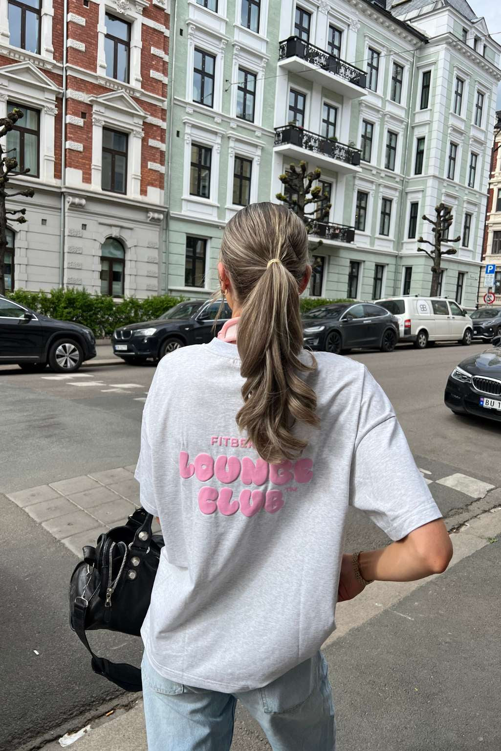 FITBERRY® LOUNGE CLUB OVERSIZED TEE. A t-shirt with an oversized fit. Crafted from a premium high-quality cotton fabric with a soft handfeel. The tee has a round neckline, dropped shoulders, loose sleeves and Fitberry Lounge Club print to front and back.