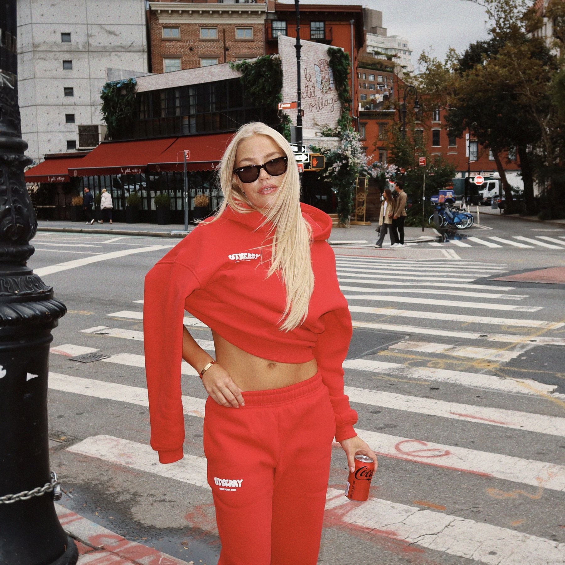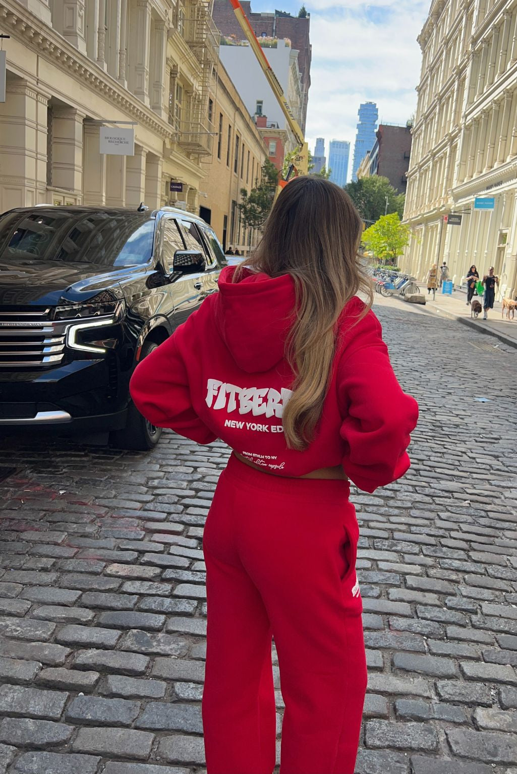 FITBERRY® NEW YORK EDIT OVERSIZED HOODIE. An oversized hoodie crafted from premium high-quality cotton fabric. The hoodie has a soft fleece interior, dropped shoulders, a cozy hood and ribbed details on the sleeves and waist. Featuring Fitberry New York Edit print to front and back.