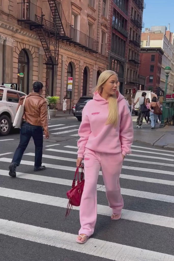 Model 1: Moa Mattsson is 170cm and wears a size S in both hoodie and joggers.