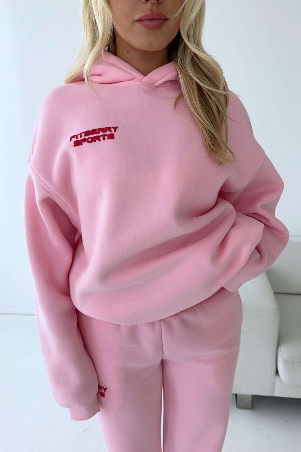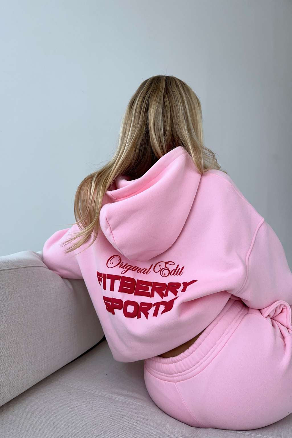 FITBERRY® ORIGINAL EDIT OVERSIZED HOODIE. An oversized hoodie crafted from premium high-quality cotton fabric. The hoodie has a soft fleece interior, dropped shoulders, a cozy hood and ribbed details on the sleeves and waist. Featuring Fitberry Original Edit print to front and back.