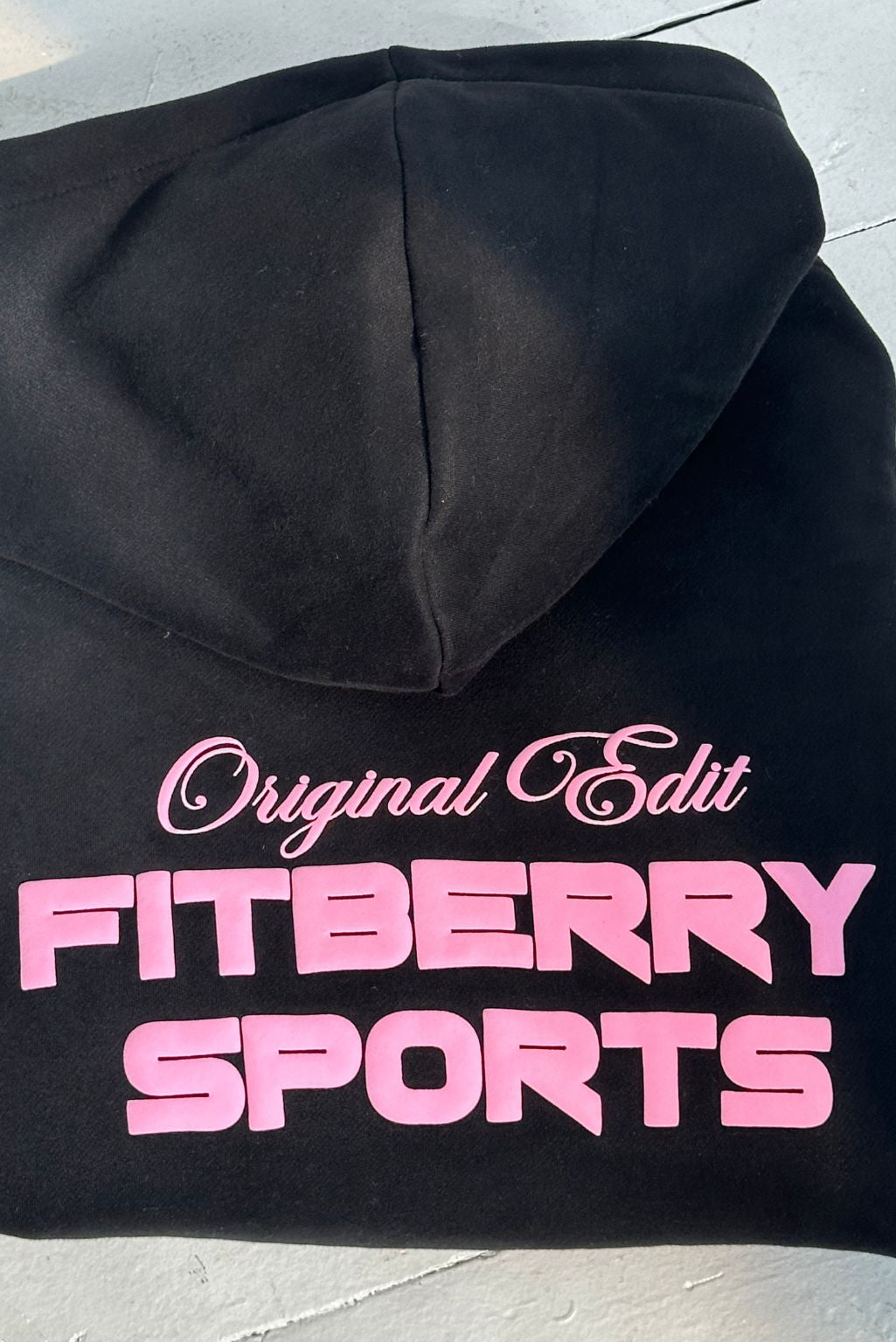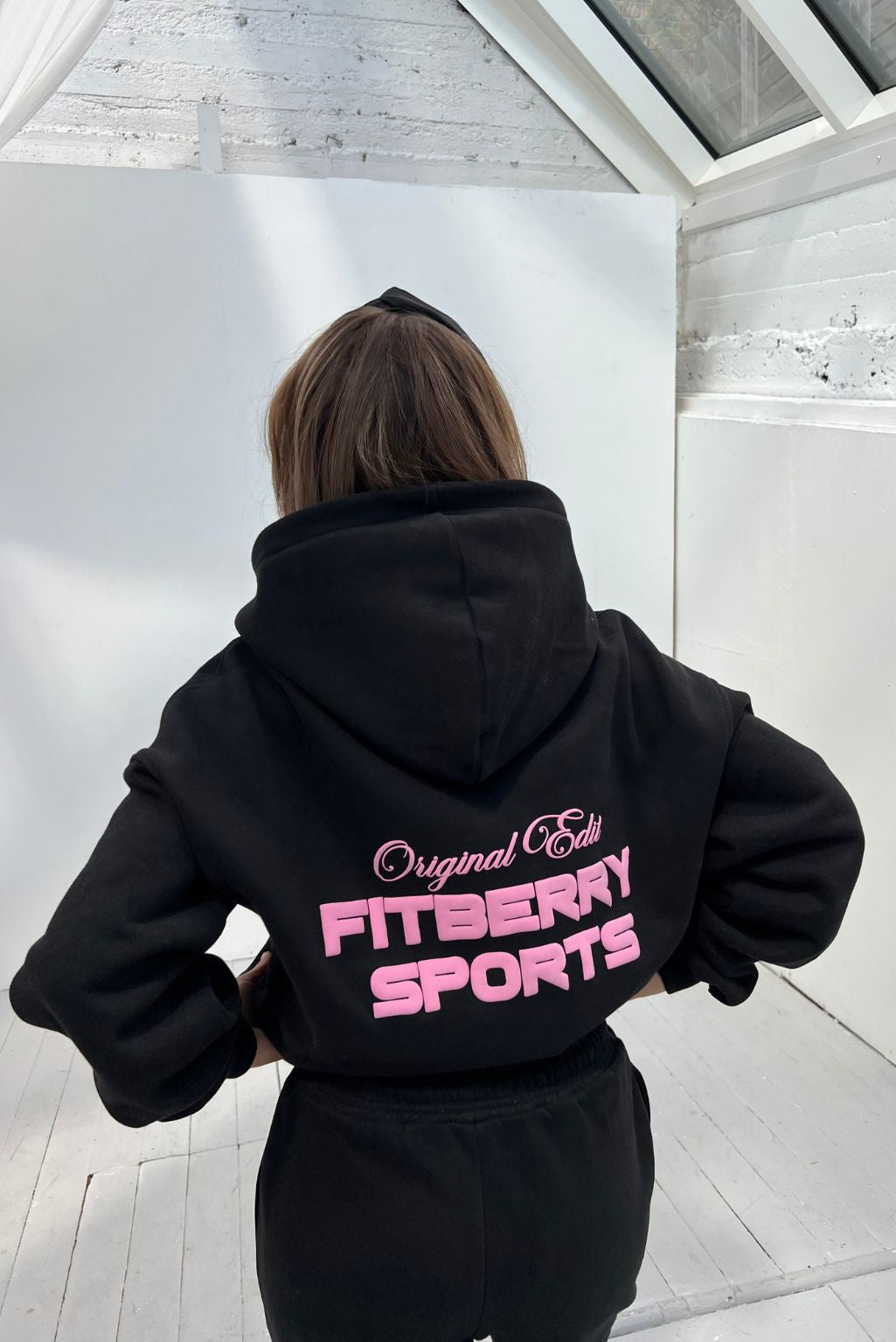 FITBERRY® ORIGINAL EDIT OVERSIZED HOODIE. An oversized hoodie crafted from premium high-quality cotton fabric. The hoodie has a soft fleece interior, dropped shoulders, a cozy hood and ribbed details on the sleeves and waist. Featuring Fitberry Original Edit print to front and back.