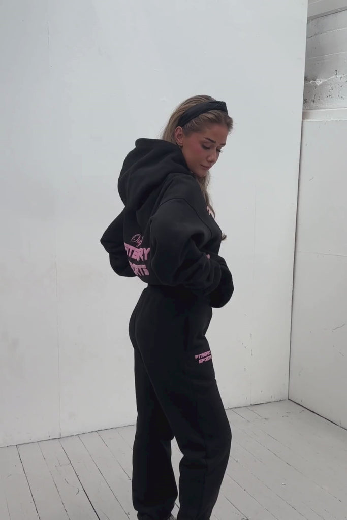 Model: Hanna is 160cm and wears a size S in hoodie and size XS in joggers.