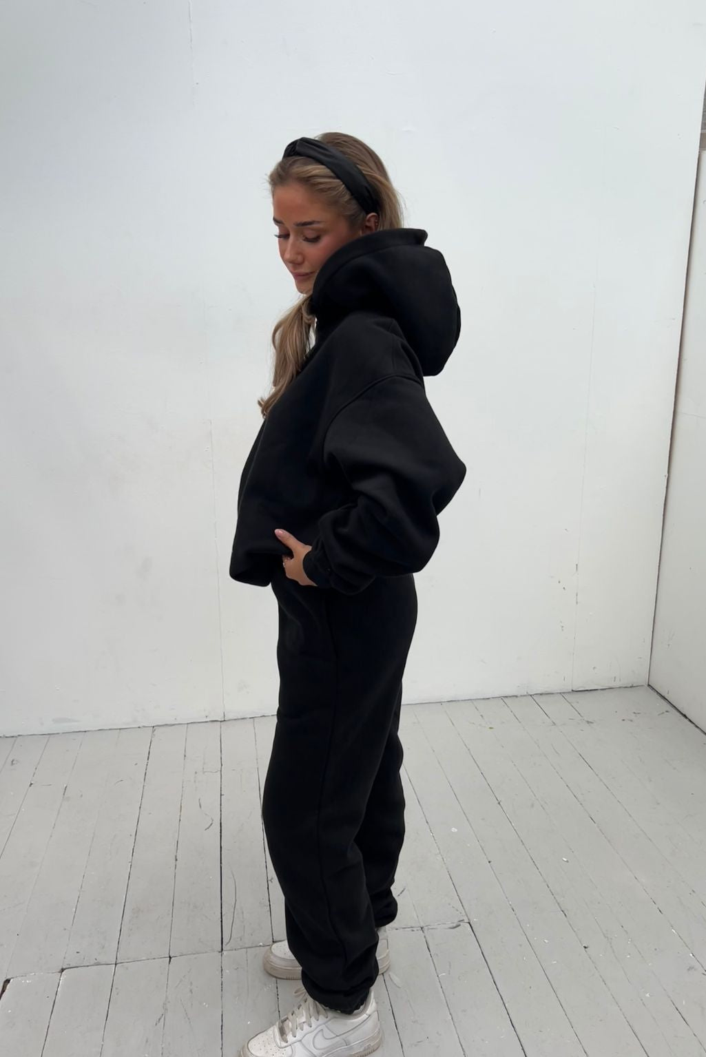Model 1: Hanna is 160cm and wears a size S in hoodie and size XS in joggers.