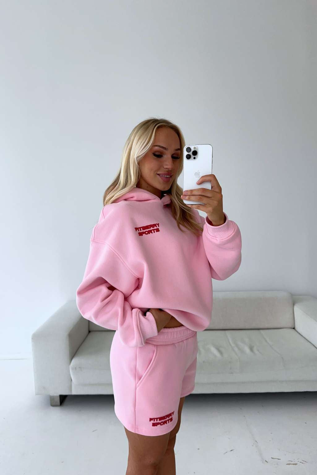 Model: Mia is 170cm and wears a size M in both hoodie and shorts.