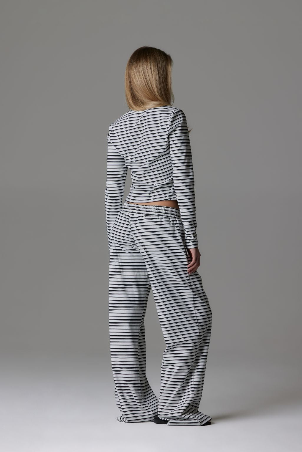 Designed with a fitted silhouette on the top and a relaxed, wide leg fit on the pants.