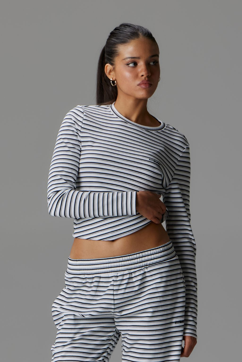 FITBERRY® PALMER SOFT STRIPE TOP. A fitted long sleeve top crafted from a super soft, lightweight jersey fabric you won't want to take off. The long sleeve features a flattering fitted silhouette with our signature FITBERRY embroidery logo to the chest.