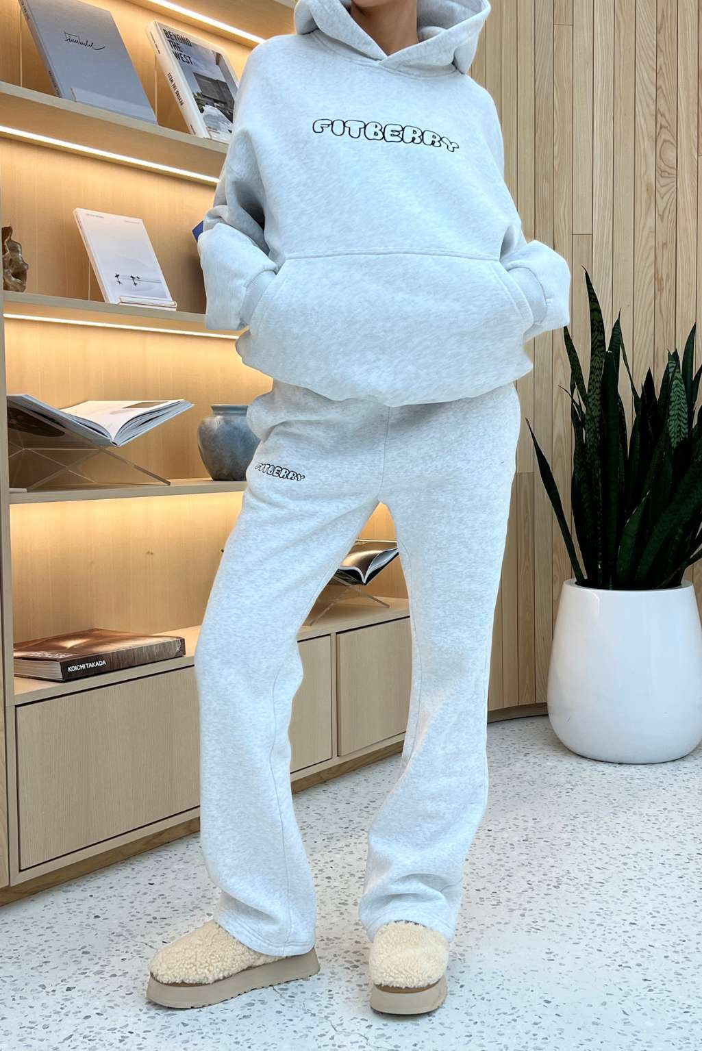 FITBERRY® PLUSHIE FLARED JOGGERS. Joggers with the perfect flared leg and an oversized fit. Crafted from a premium high-quality cotton fabric. The flare joggers have soft fleece interior, deep pockets and a hidden adjustable drawstring waist.