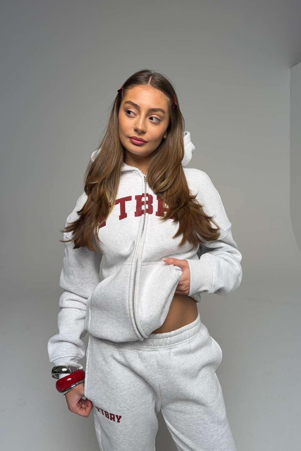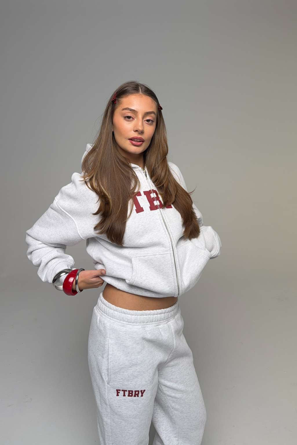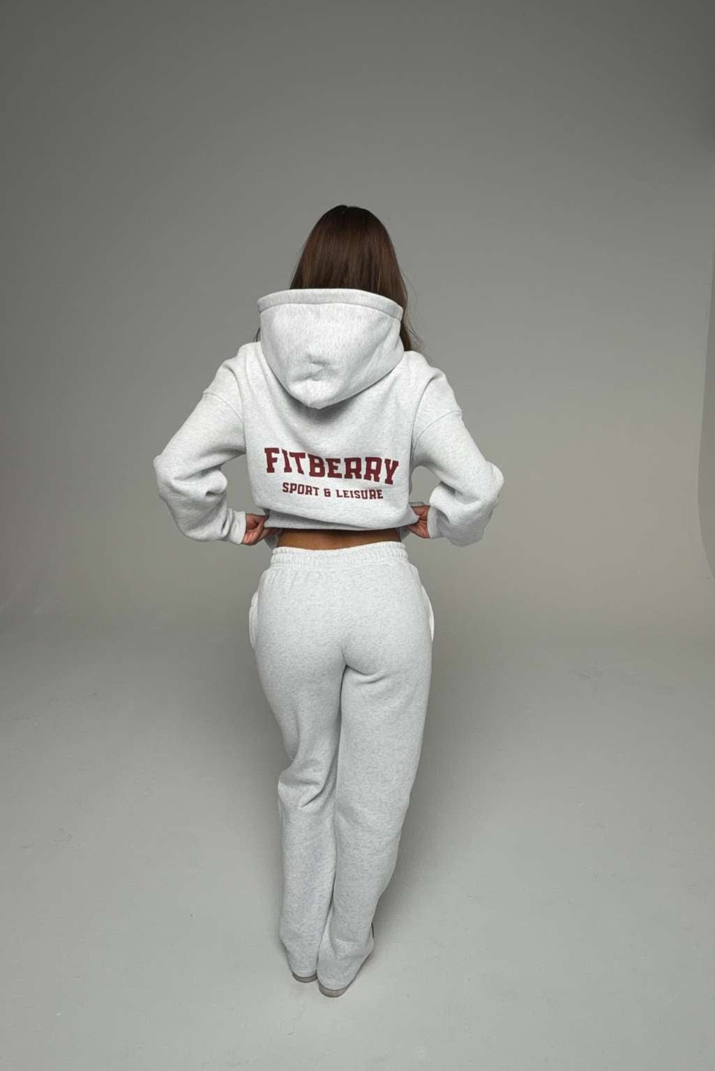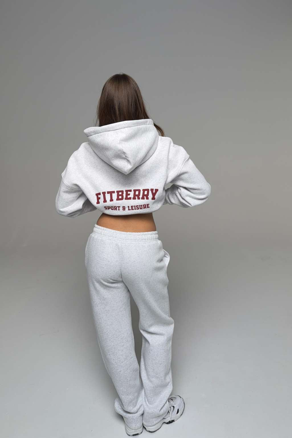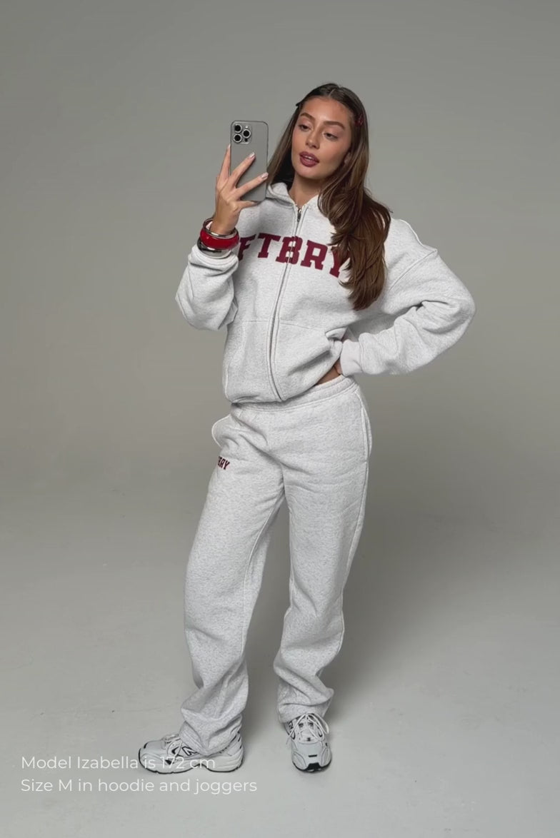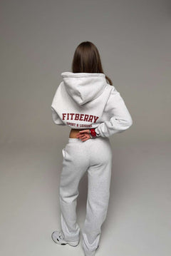 FITBERRY® SPORT & LEISURE ZIP HOODIE. A slightly oversized hoodie crafted from a premium high-quality cotton fabric. The hoodie has zipper in front, soft fleece interior, dropped shoulders, side pockets, a cozy hood and ribbed details on the sleeves and waist. Featuring Sport & Leisure print to front and back.
