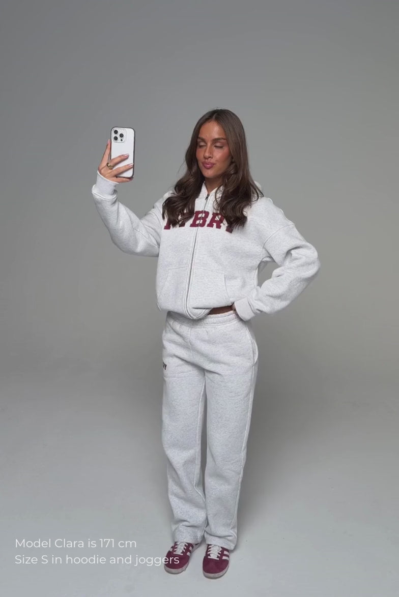 Model 2: Clara is 171cm and wears a size S in both hoodie and joggers / shorts.
