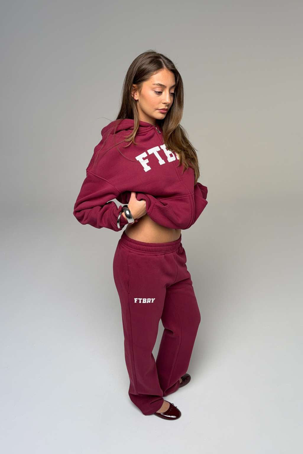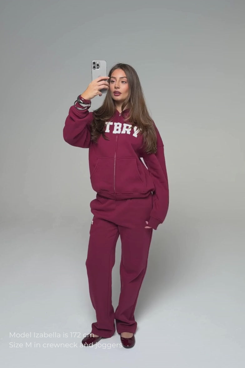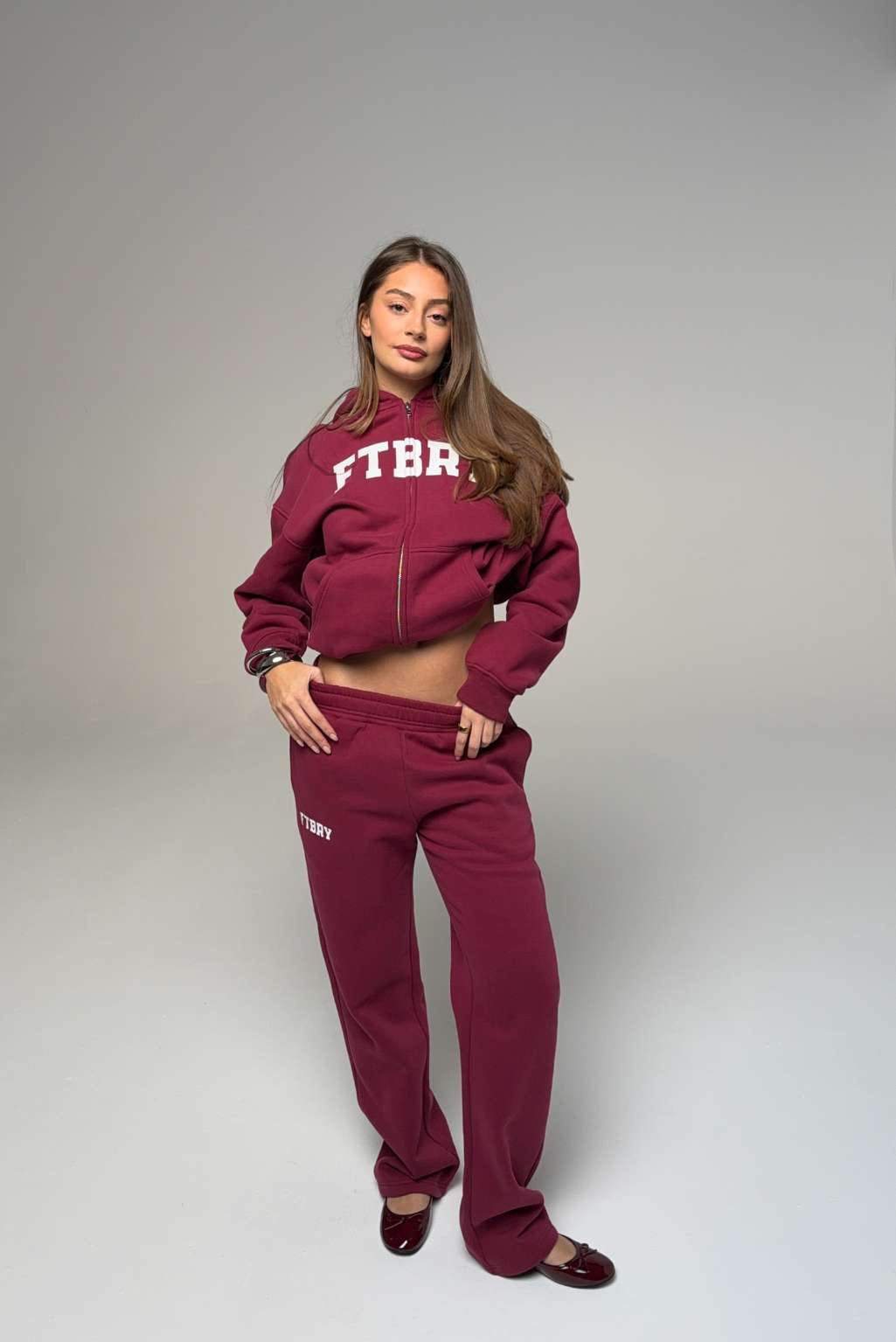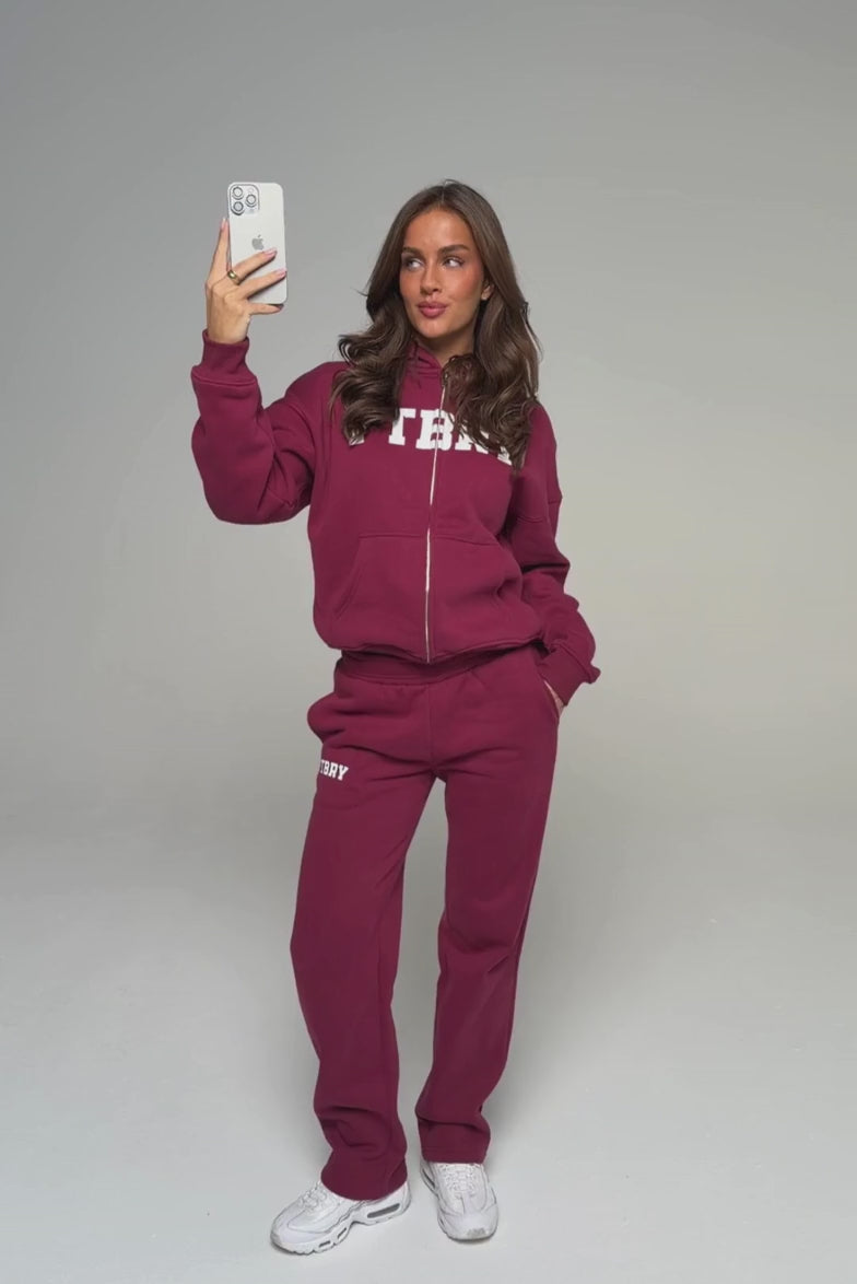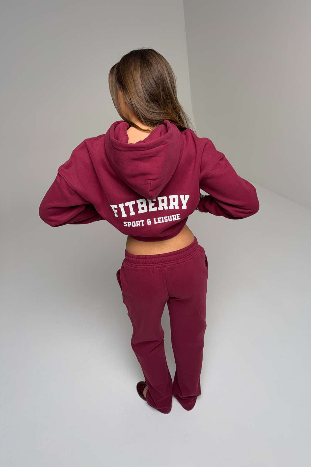 FITBERRY® SPORT & LEISURE STRAIGHT LEG JOGGERS. Mid-waist joggers with straight leg and the perfect fit. Crafted from a premium high-quality cotton fabric. The straight joggers have soft fleece interior, deep pockets and a hidden adjustable drawstring waist. Featuring FITBERRY® Sport & Leisure print to front.