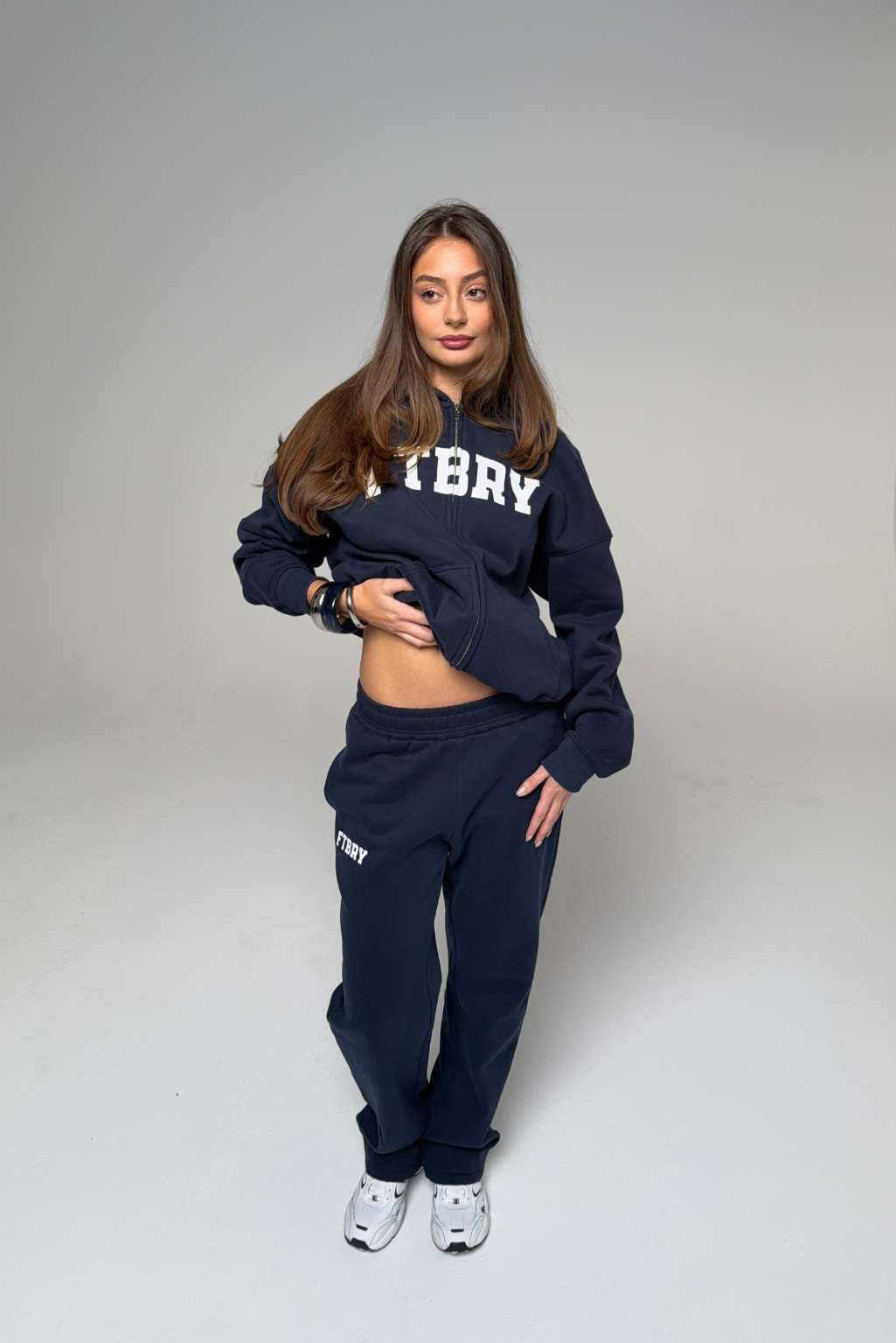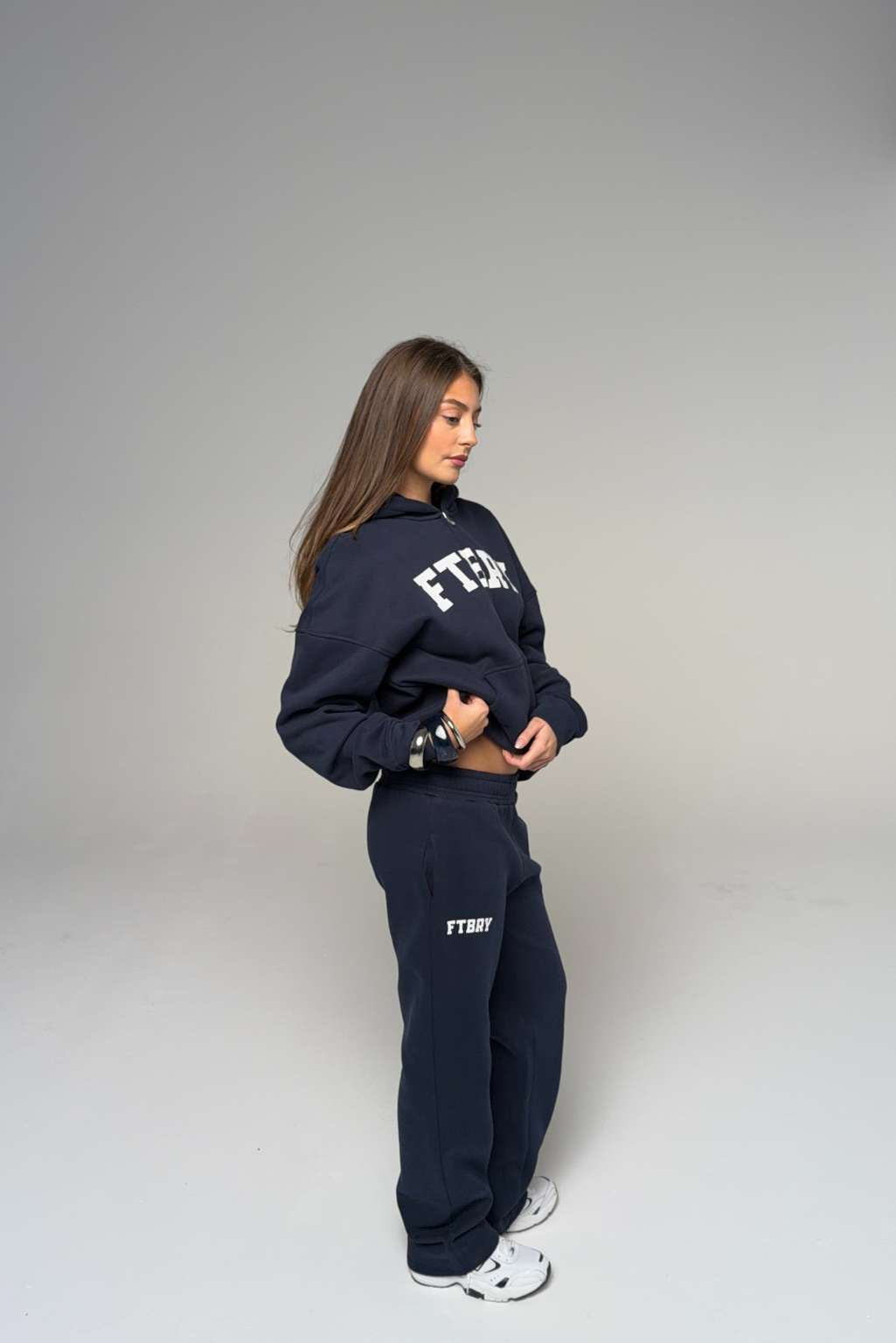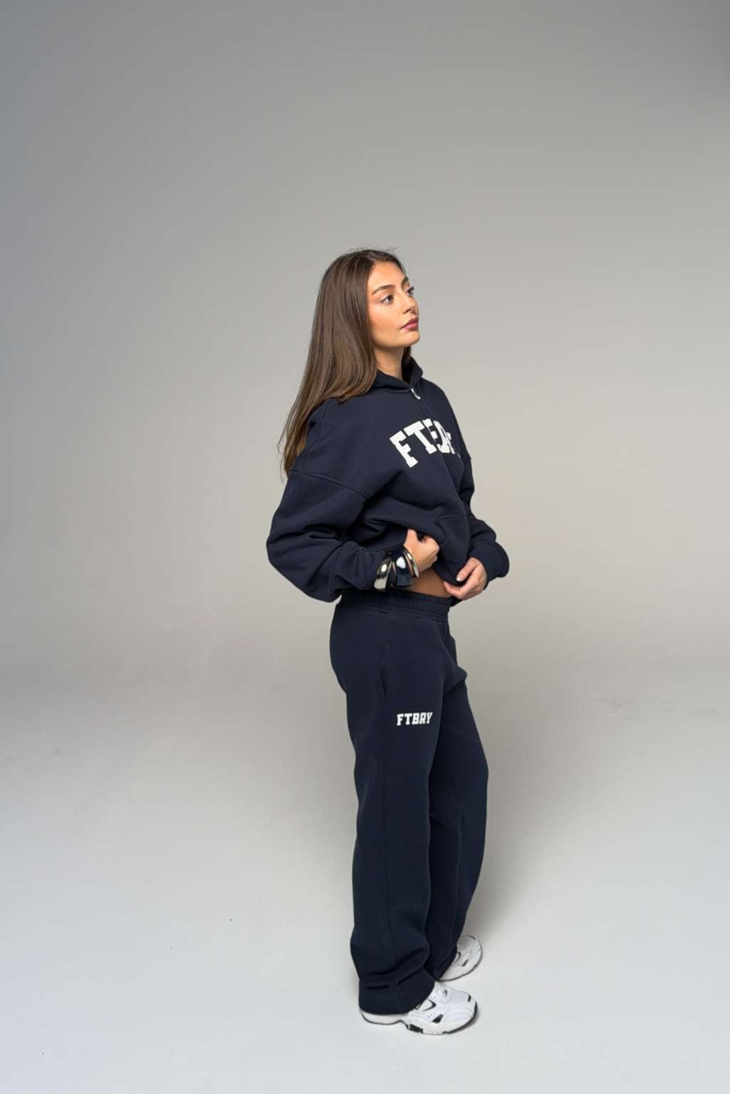 Model 2: Clara is 171cm and wears a size S in both hoodie and joggers / shorts.