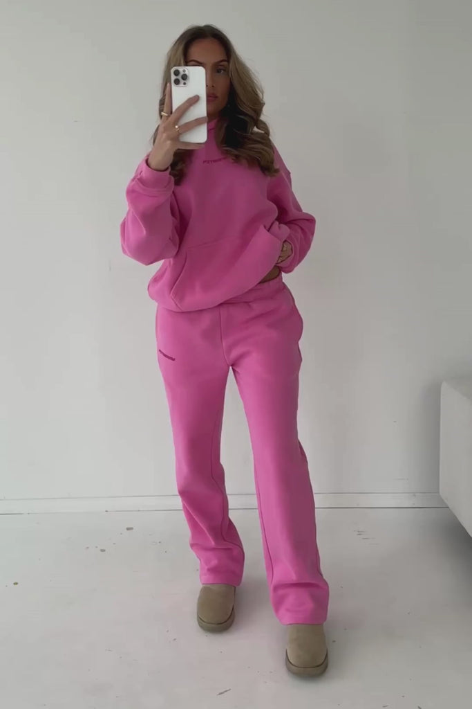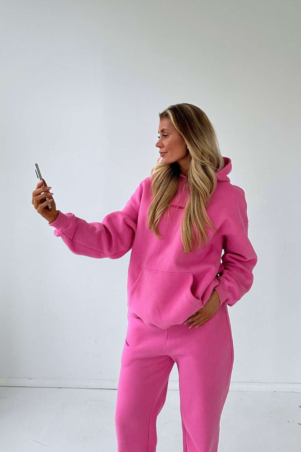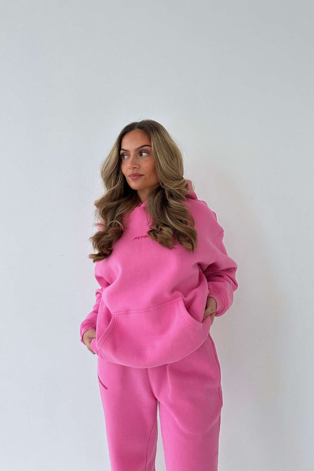 FITBERRY® SPORT SERIES OVERSIZED HOODIE. An oversized hoodie crafted from a premium high-quality cotton fabric. The hoodie has a soft fleece interior, dropped shoulders, a cozy hood, front pocket and ribbed details on the sleeves and waist. Featuring our Fitberry Sport Series print to front and back.