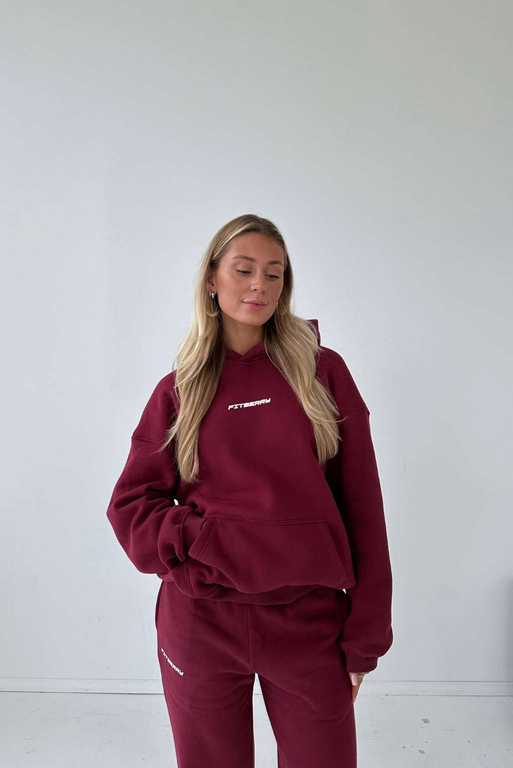 FITBERRY® SPORT SERIES OVERSIZED HOODIE. An oversized hoodie crafted from a premium high-quality cotton fabric. The hoodie has a soft fleece interior, dropped shoulders, a cozy hood, front pocket and ribbed details on the sleeves and waist. Featuring our Fitberry Sport Series print to front and back.