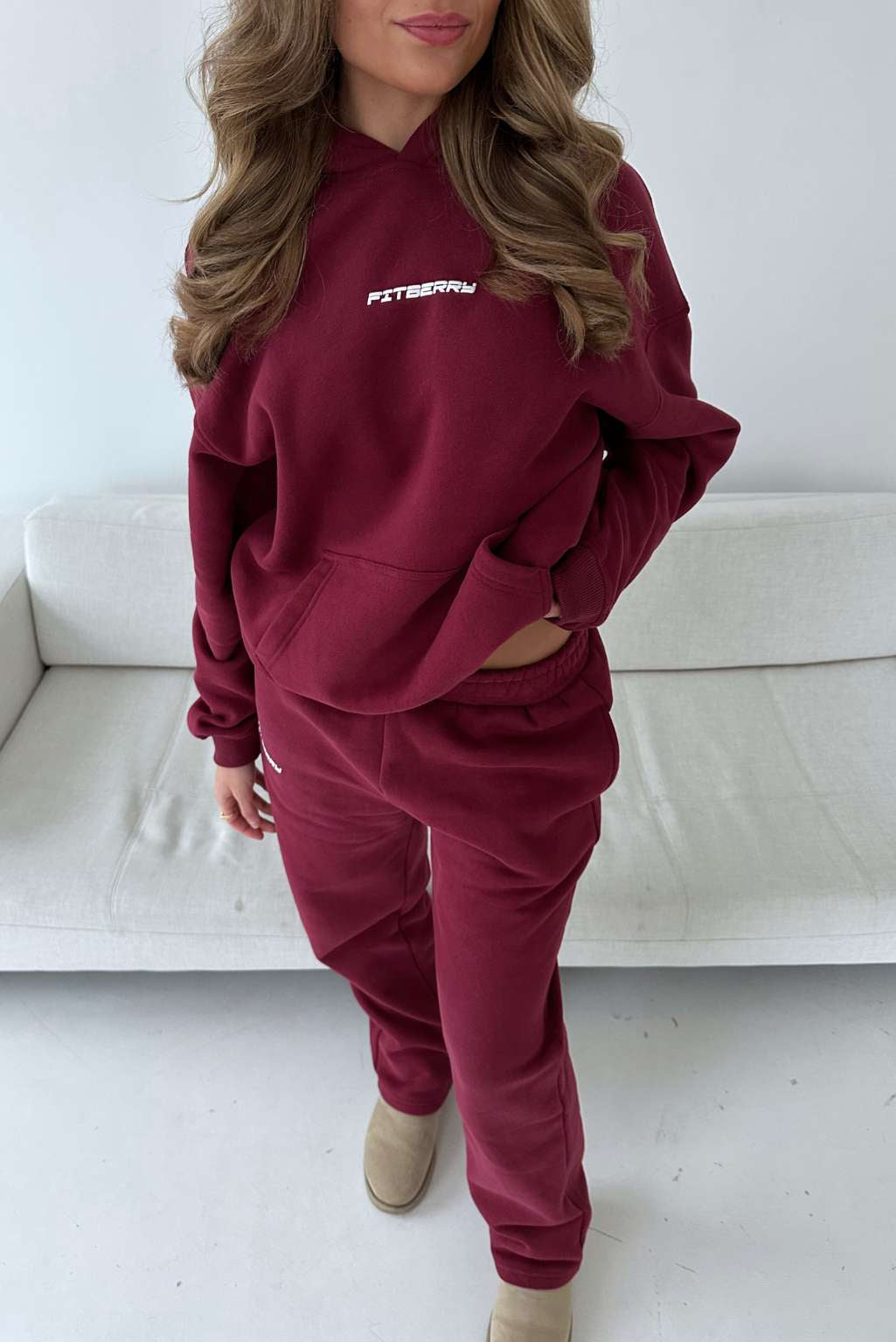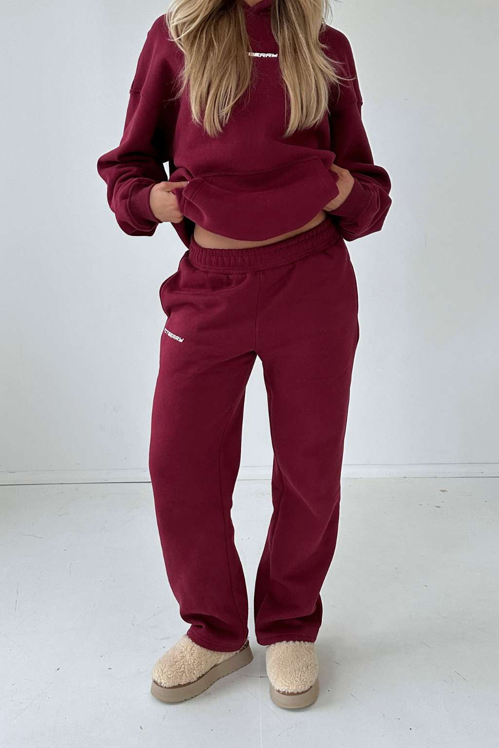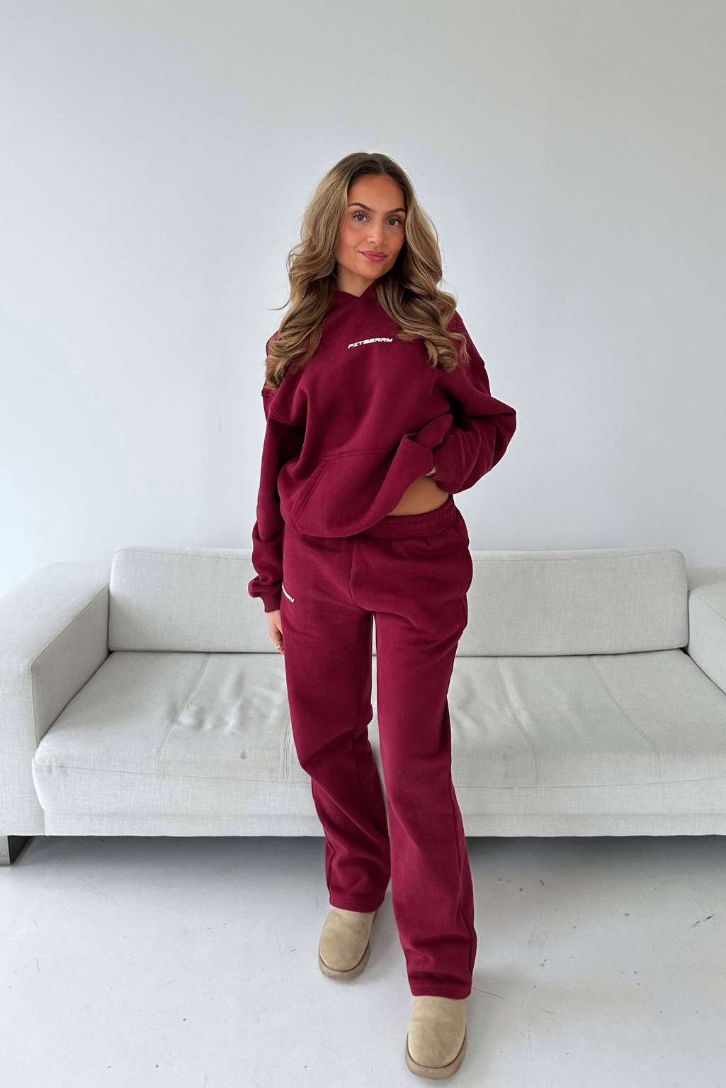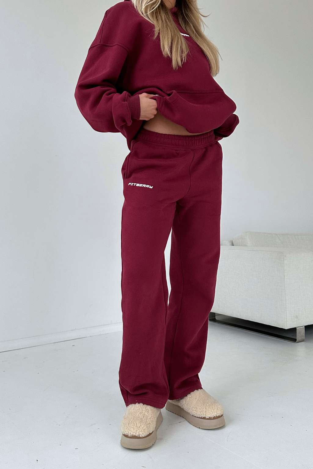 FITBERRY® SPORT SERIES STRAIGHT LEG JOGGERS. Mid-waist joggers with straight leg and the perfect fit. Crafted from a premium high-quality cotton fabric. The straight joggers have soft fleece interior, deep pockets and a hidden adjustable drawstring waist. Featuring our Fitberry Sport Series print to front.