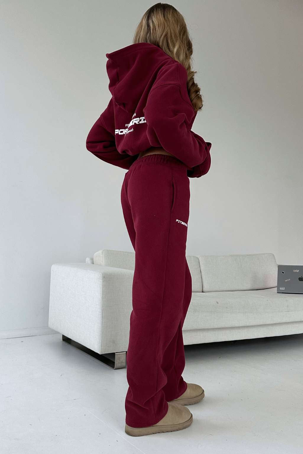 Model 2: Andrea is 173cm and wears a size S in hoodie and size M in joggers.