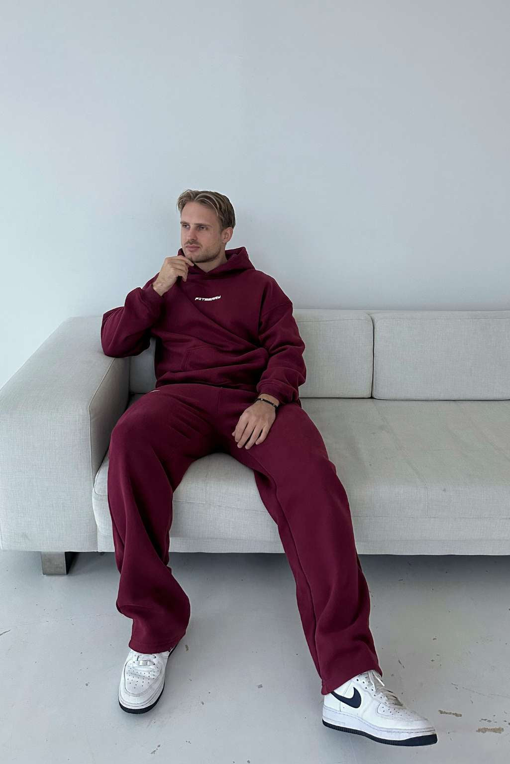 Model 3: Arnold is 180cm and wears size L in both hoodie and joggers.