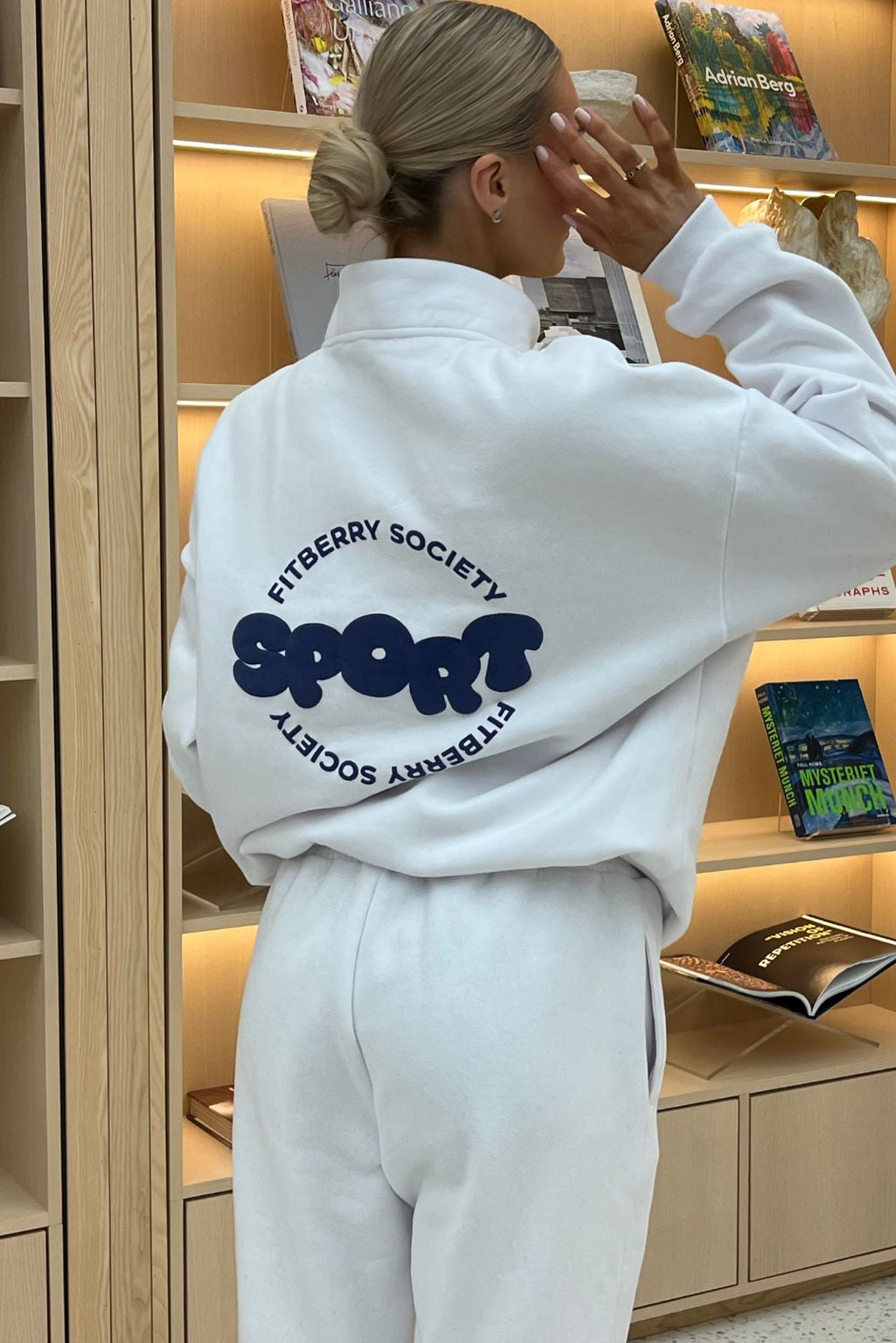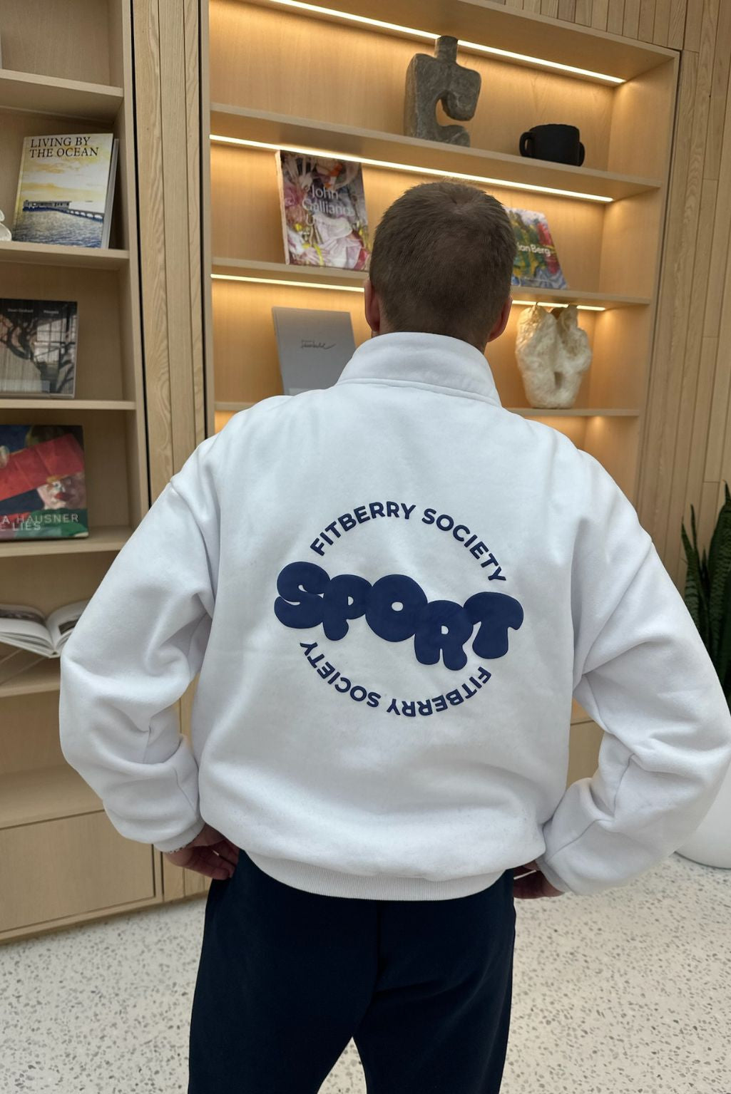 FITBERRY® SPORT SOCIETY OVERSIZED HALF ZIP. A sweatshirt with half zip in front and the perfect oversized fit. Crafted from a premium high-quality cotton fabric. The half zip has soft fleece interior, dropped shoulders and ribbed details on the sleeves and waist. Featuring our signature Sport Society logo to front and back.