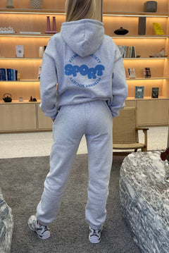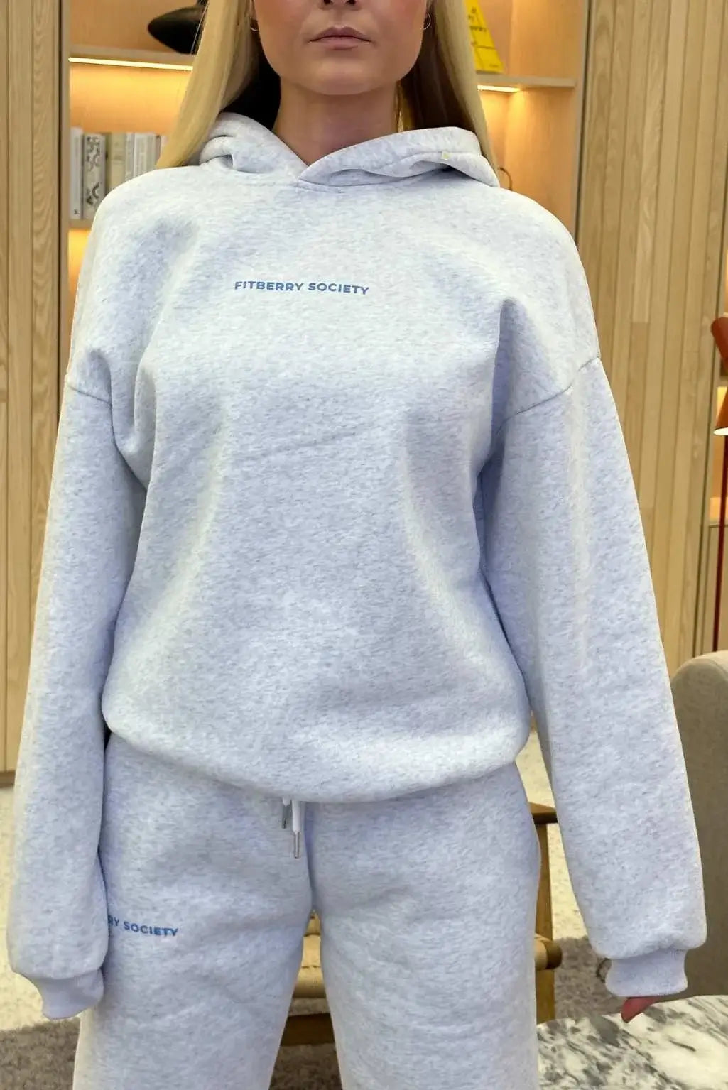 FITBERRY® SPORT SOCIETY OVERSIZED HOODIE. An oversized hoodie crafted from a premium high-quality cotton fabric. The hoodie has a soft fleece interior, dropped shoulders, a cozy hood and ribbed details on the sleeves and waist. Featuring our signature Sport Society print to front and back.