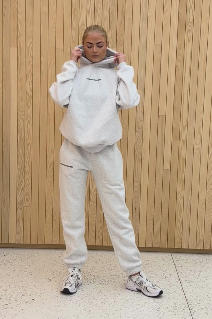 FITBERRY® SPORT SOCIETY OVERSIZED HOODIE. An oversized hoodie crafted from a premium high-quality cotton fabric. The hoodie has a soft fleece interior, dropped shoulders, a cozy hood and ribbed details on the sleeves and waist. Featuring our signature Sport Society print to front and back.