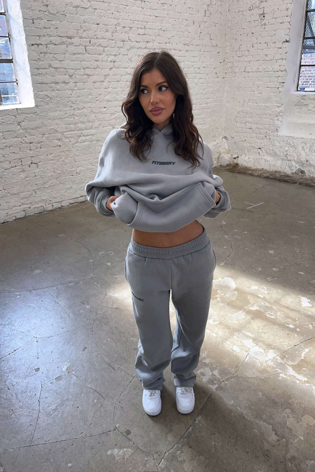 FITBERRY® SPORTS CLUB STRAIGHT LEG JOGGERS. Mid-waist joggers with straight leg and the perfect fit. Crafted from a premium high-quality cotton fabric. The straight joggers have soft fleece interior, deep pockets and a hidden adjustable drawstring waist. Featuring our Fitberry Sports Club print to front.