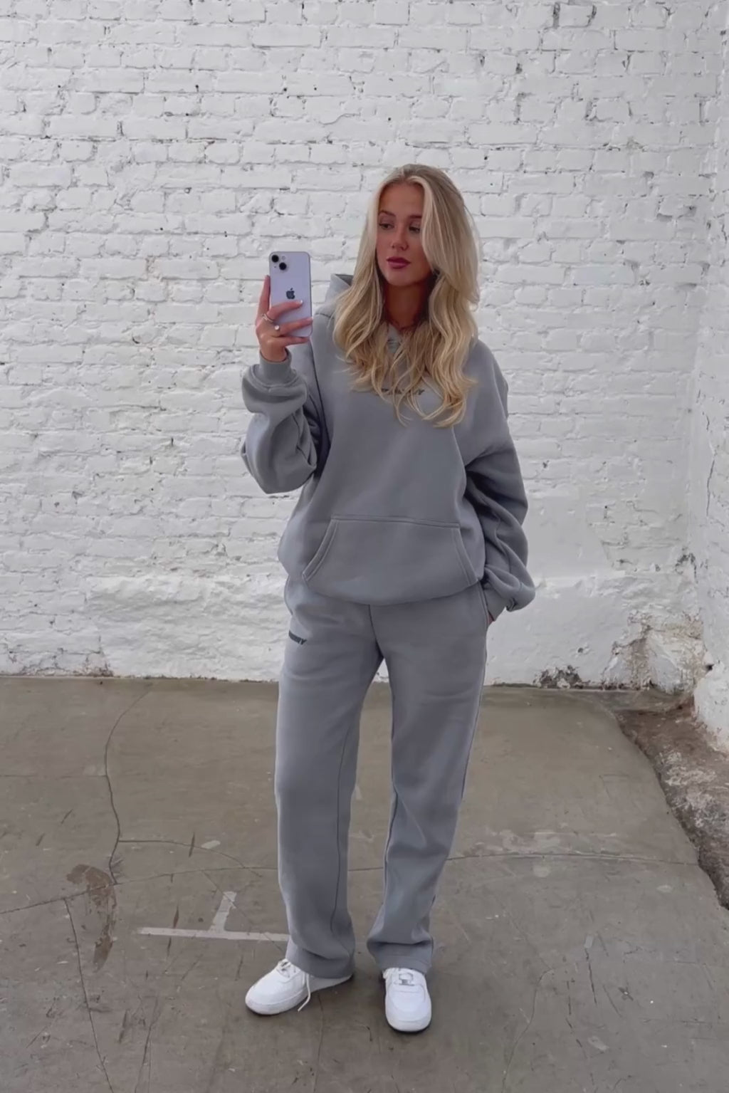 Model 1: Maria is 162cm and wears a size S in both hoodie and joggers for an extra baggy fit. Maria is usually a size XS.