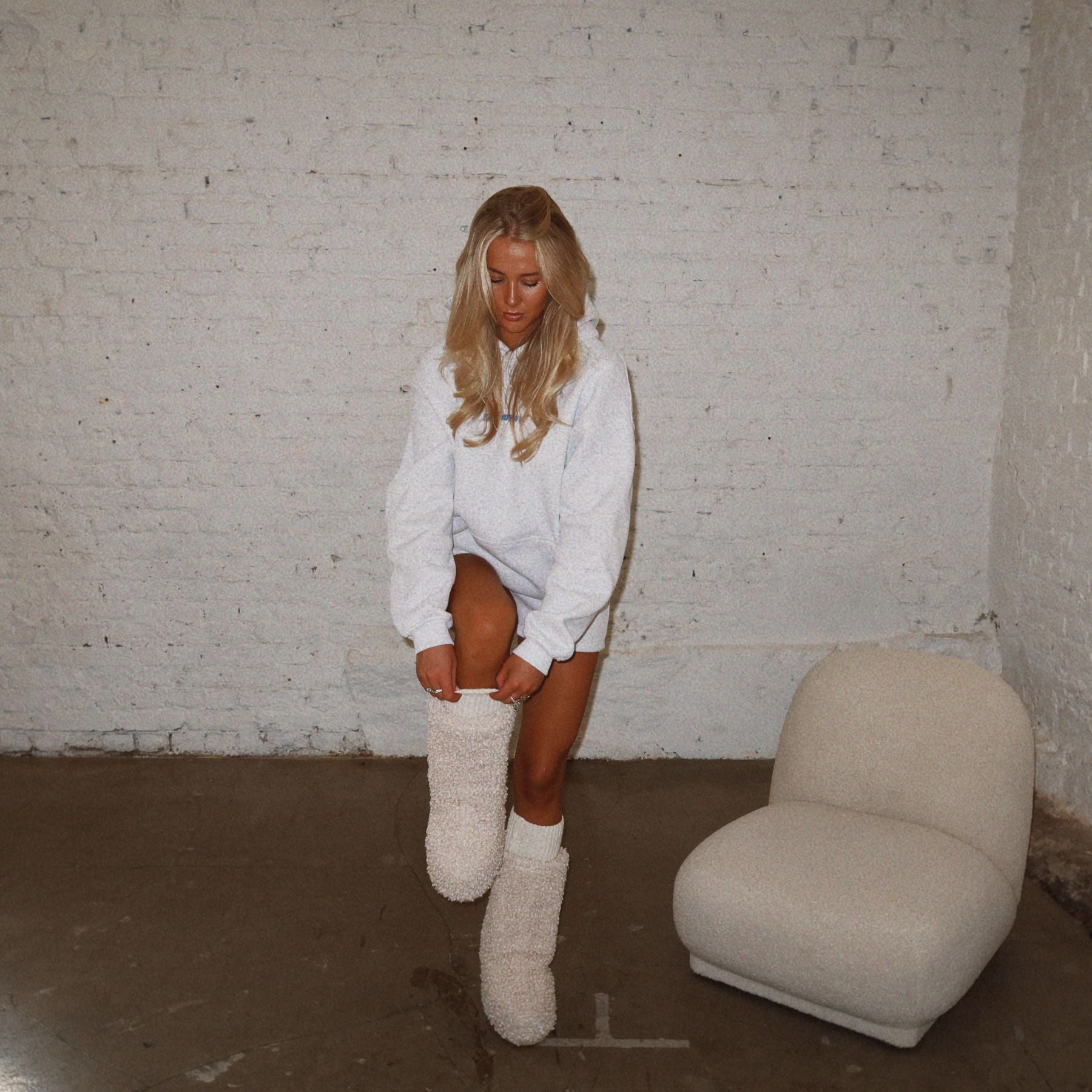 Model 2: Maria is 162cm and wears a size S in both hoodie and joggers for an extra baggy fit. Maria is usually a size XS.