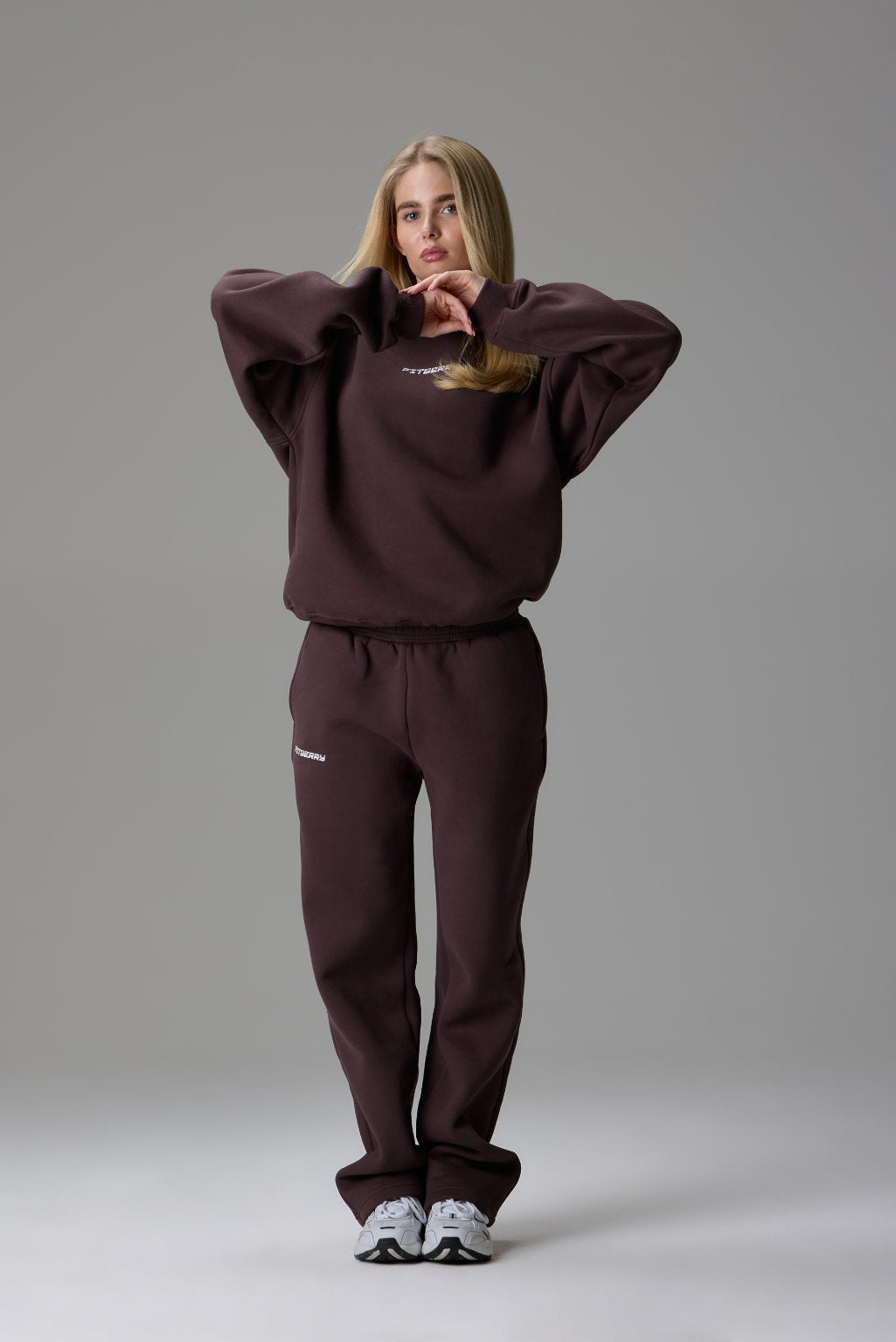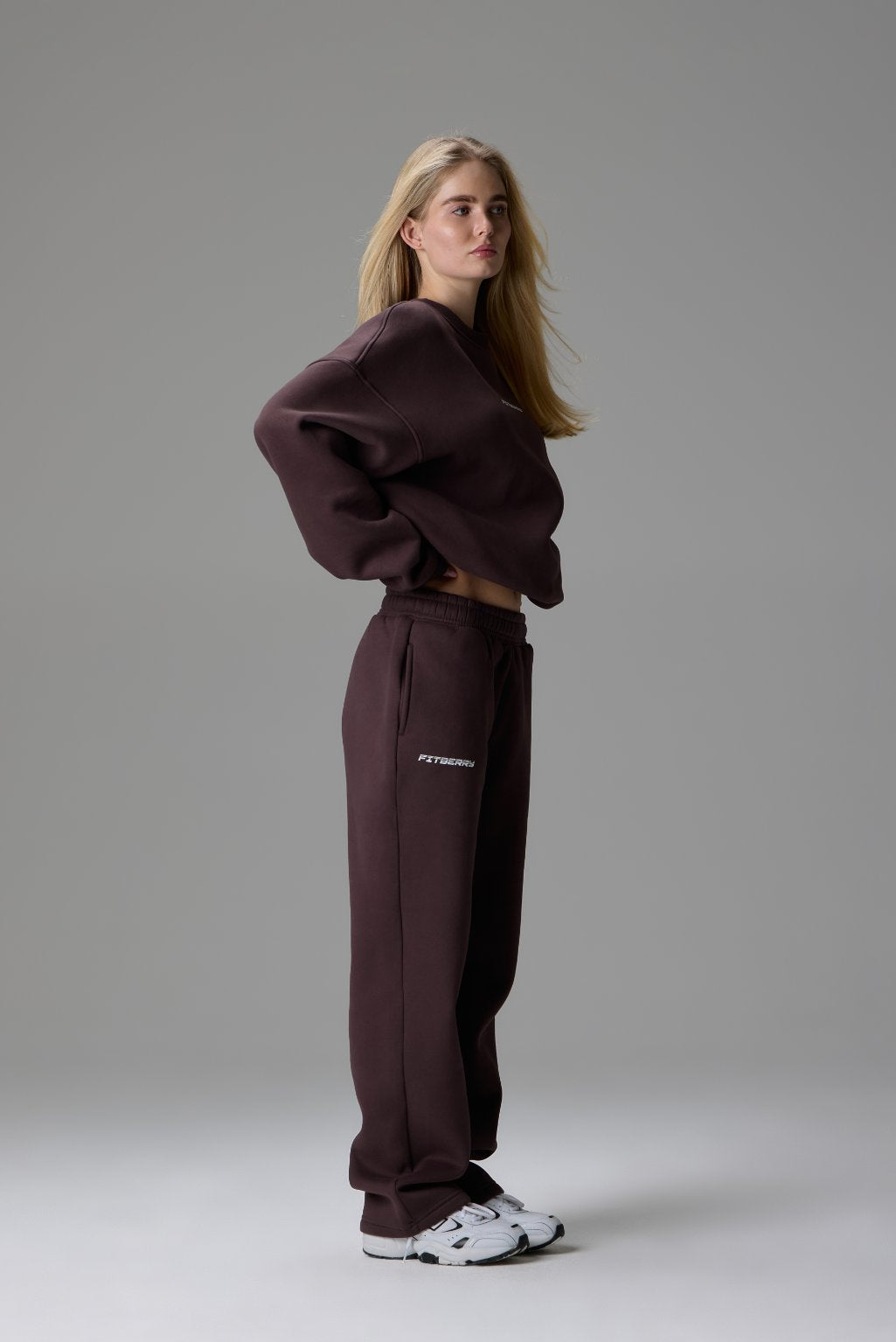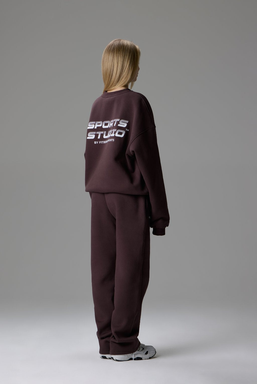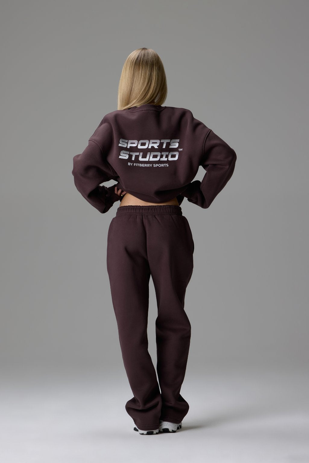 FITBERRY® SPORTS STUDIO CREWNECK. An oversized crewneck crafted from premium high-quality cotton fabric. The crewneck has a soft fleece interior, round neck, dropped shoulders and ribbed details at the neck, cuffs and waist. Featuring FITBERRY® Sports Studio print to front and back.