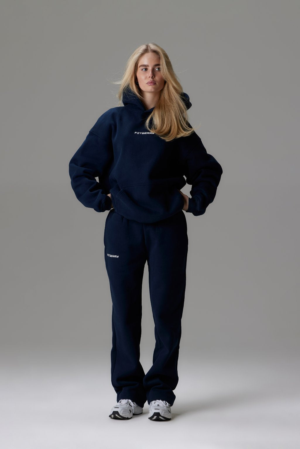FITBERRY® SPORTS STUDIO STRAIGHT LEG JOGGERS. Mid-waist joggers with straight leg and the perfect fit. Crafted from a premium high-quality cotton fabric. The straight joggers have soft fleece interior, deep pockets and a hidden adjustable drawstring waist. Featuring our Fitberry Sports Studio print to front.