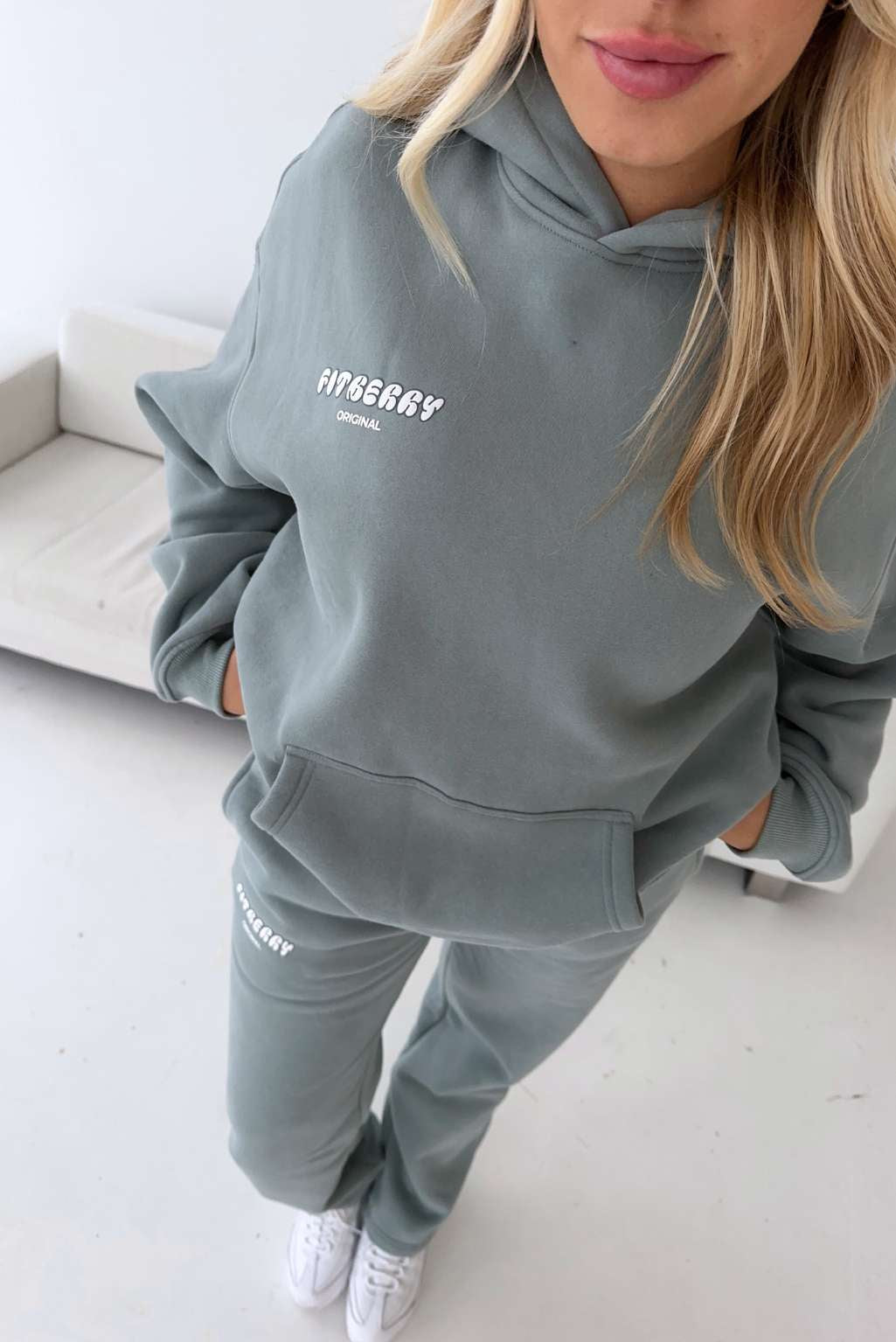 FITBERRY® SPORTY OVERSIZED HOODIE. An oversized hoodie crafted from premium high-quality cotton fabric. The hoodie has a soft fleece interior, dropped shoulders, a cozy hood, front pocket and ribbed details on the sleeves and waist. Featuring Fitberry Sporty print to front and back.