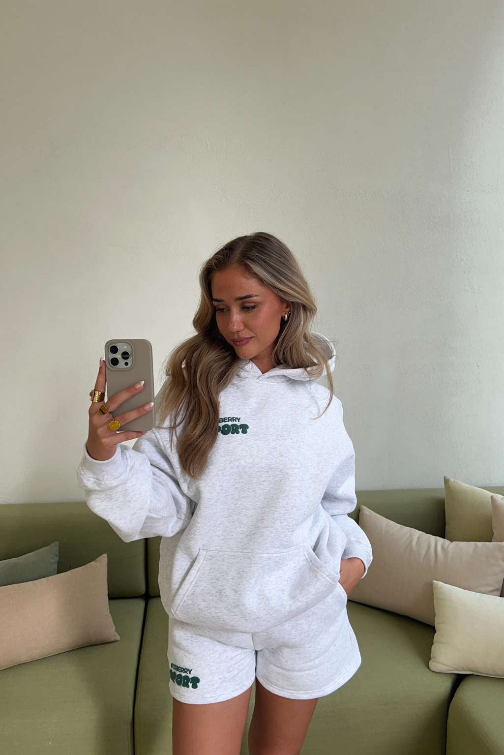 FITBERRY® SUMMER EDITION OVERSIZED HOODIE. An oversized hoodie crafted from premium high-quality cotton fabric. The hoodie has a soft fleece interior, dropped shoulders, a cozy hood, front pocket and ribbed details on the sleeves and waist. Featuring Fitberry Summer Edition print to front and back.