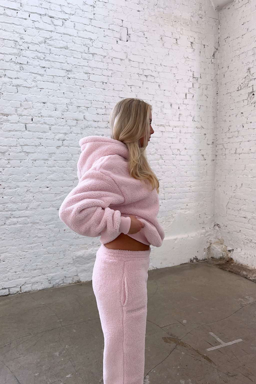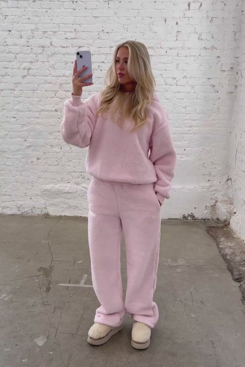 FITBERRY® SNOW BUNNY OVERSIZED HOODIE. An oversized hoodie crafted from a buttery soft teddy fleece fabric. The hoodie has a soft fleece interior, dropped shoulders, a big cozy hood and Fitberry embroidery logo to front.