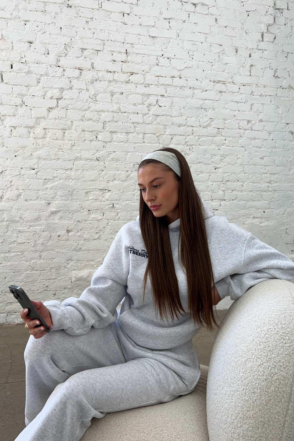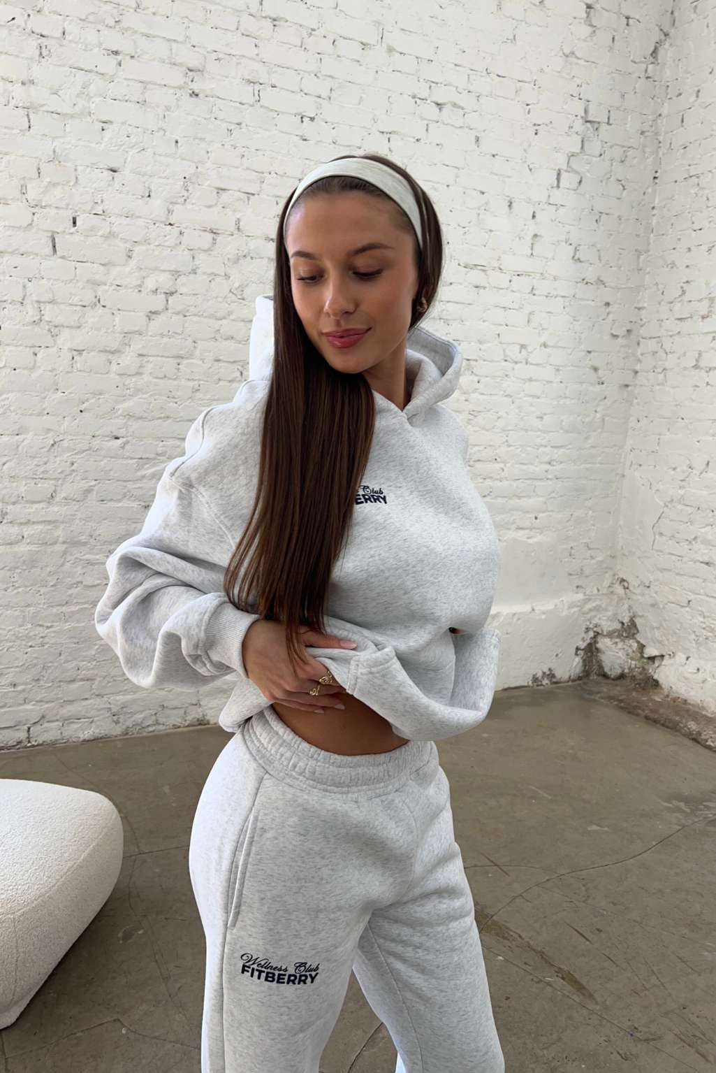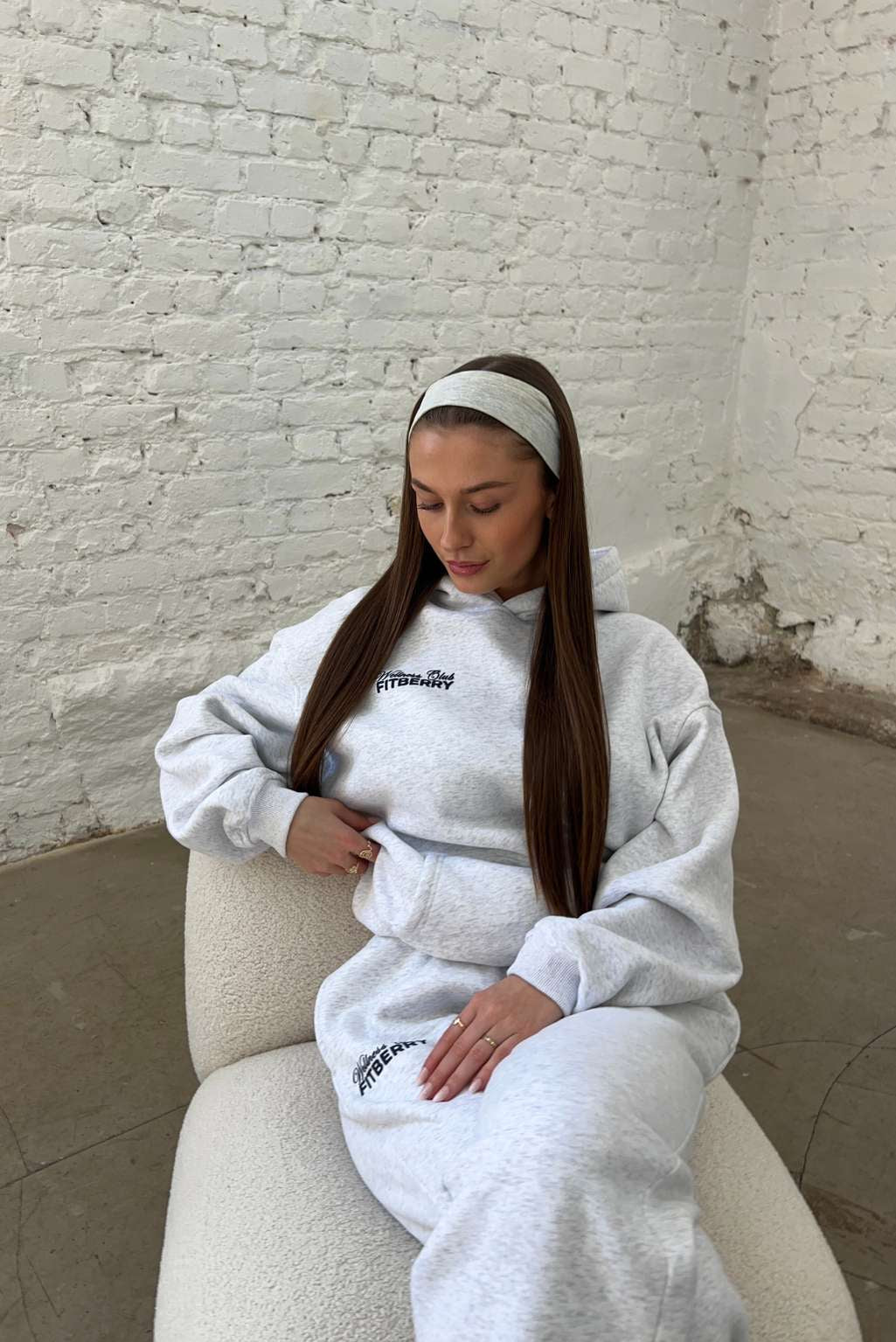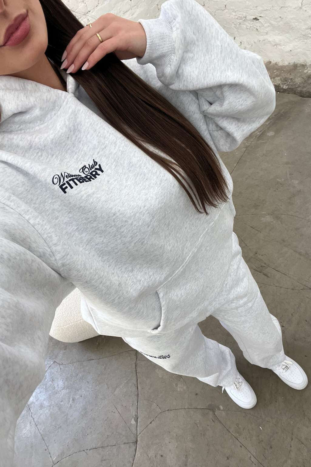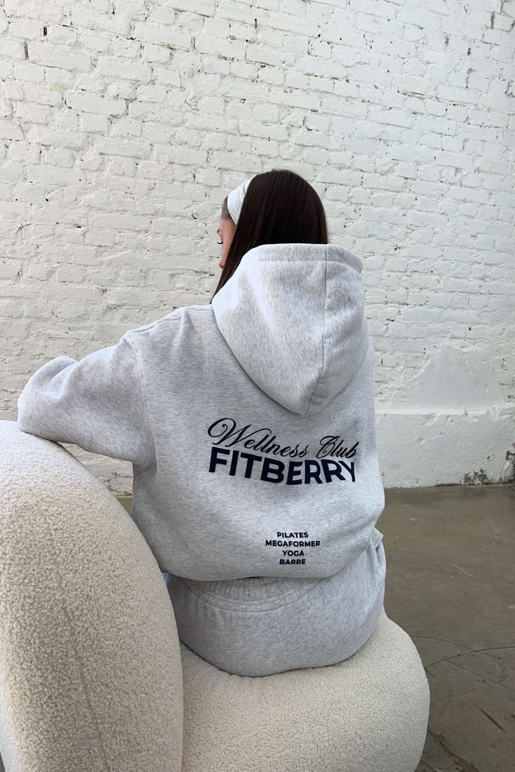 FITBERRY® WELLNESS CLUB OVERSIZED HOODIE. An oversized hoodie crafted from premium high-quality cotton fabric. The hoodie has a soft fleece interior, dropped shoulders, a cozy hood and ribbed details on the sleeves and waist. Featuring FITBERRY® WELLNESS CLUB print to front and back.