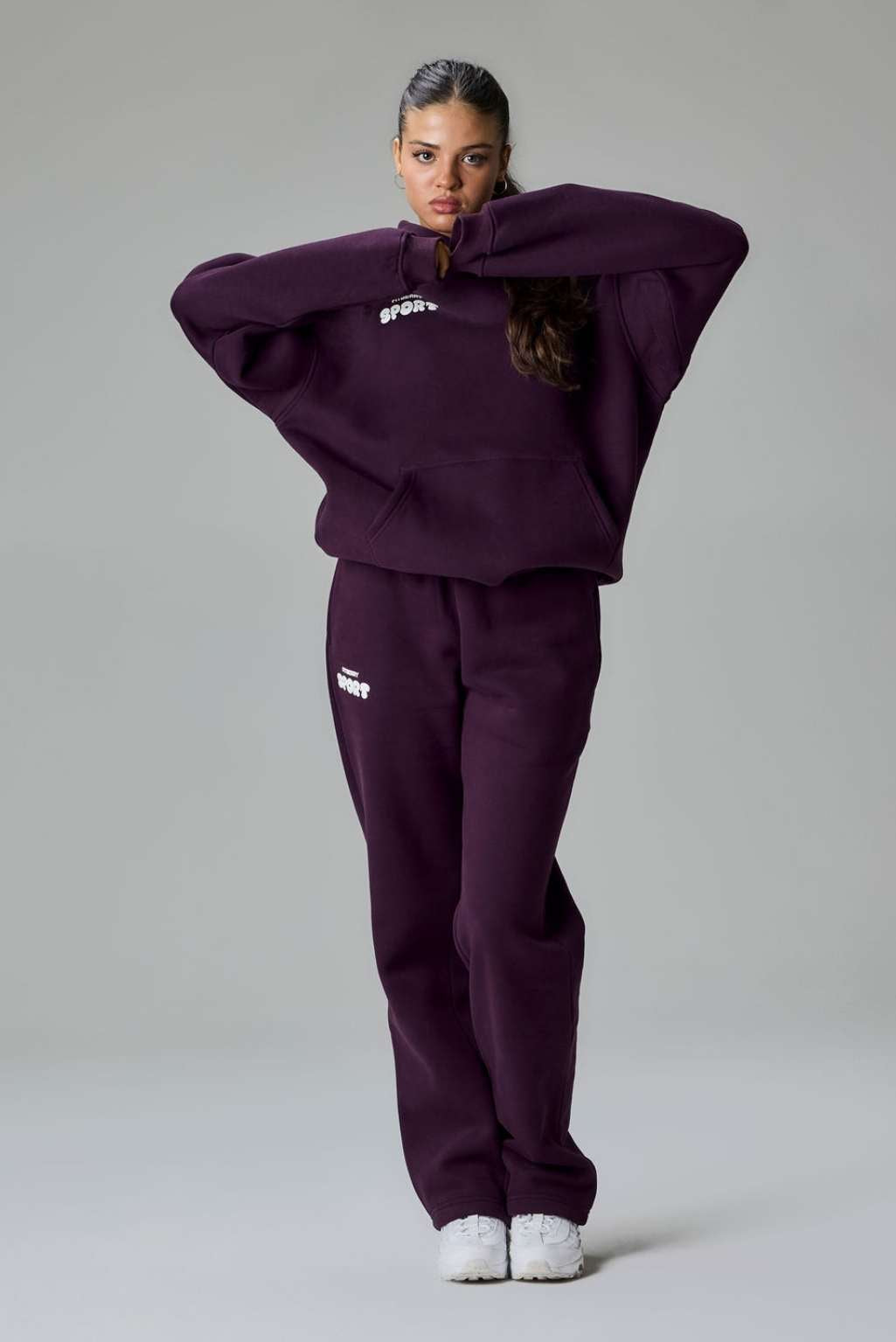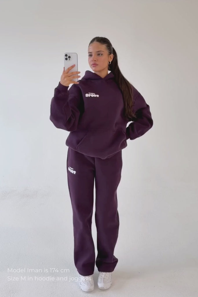 Model 2: Iman is 174cm and wears a size M in both hoodie and joggers.